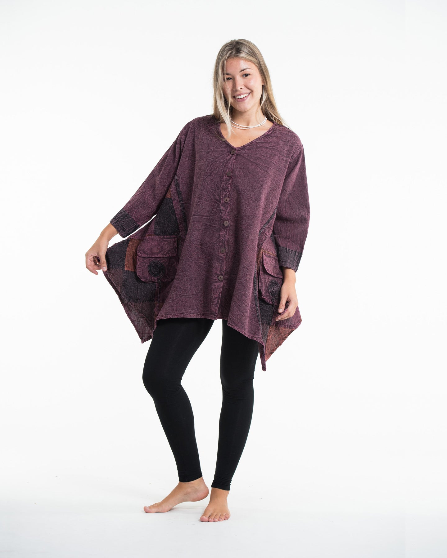 Unisex Patchwork Stonewashed Tunic Top in Purple