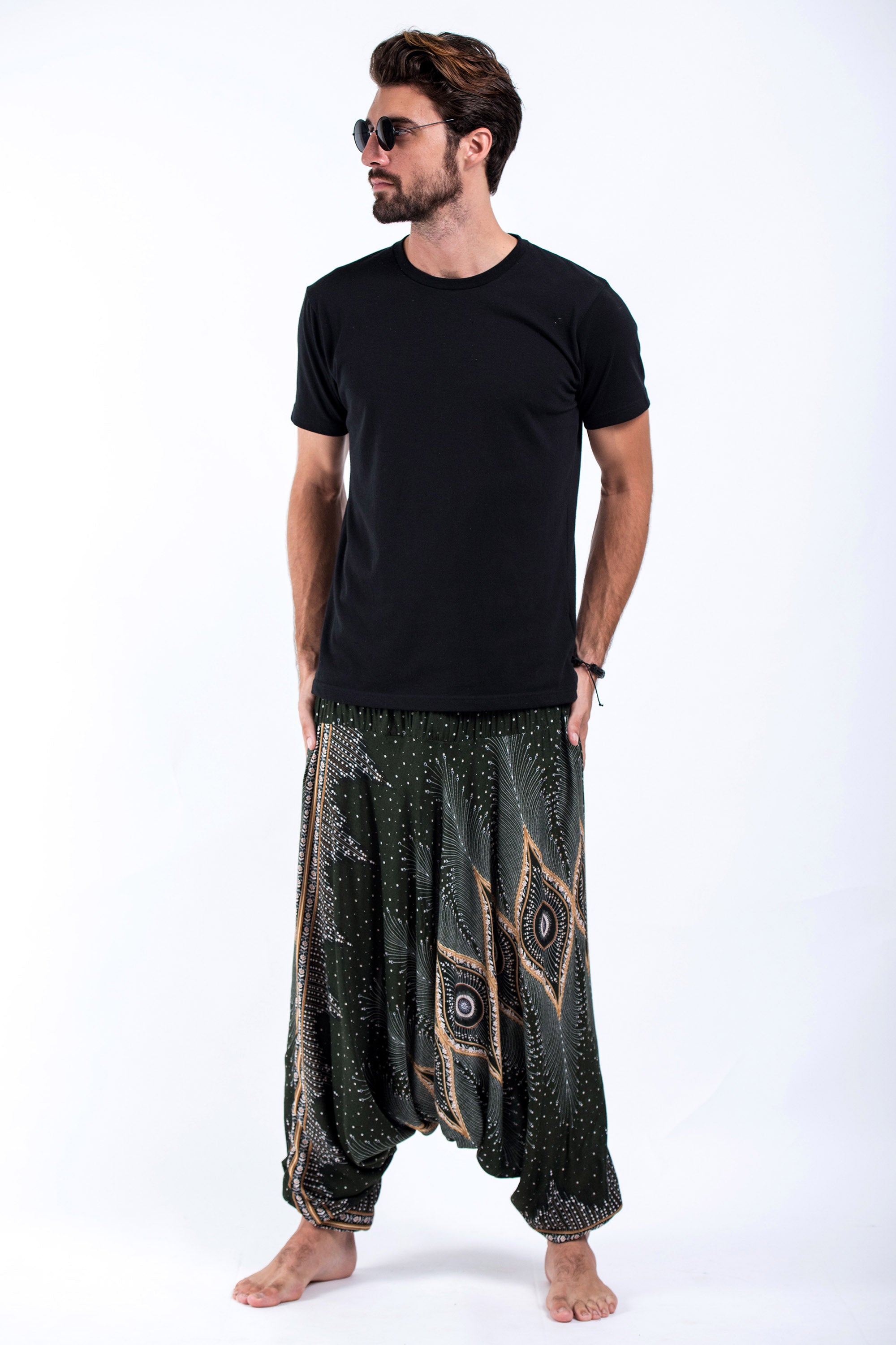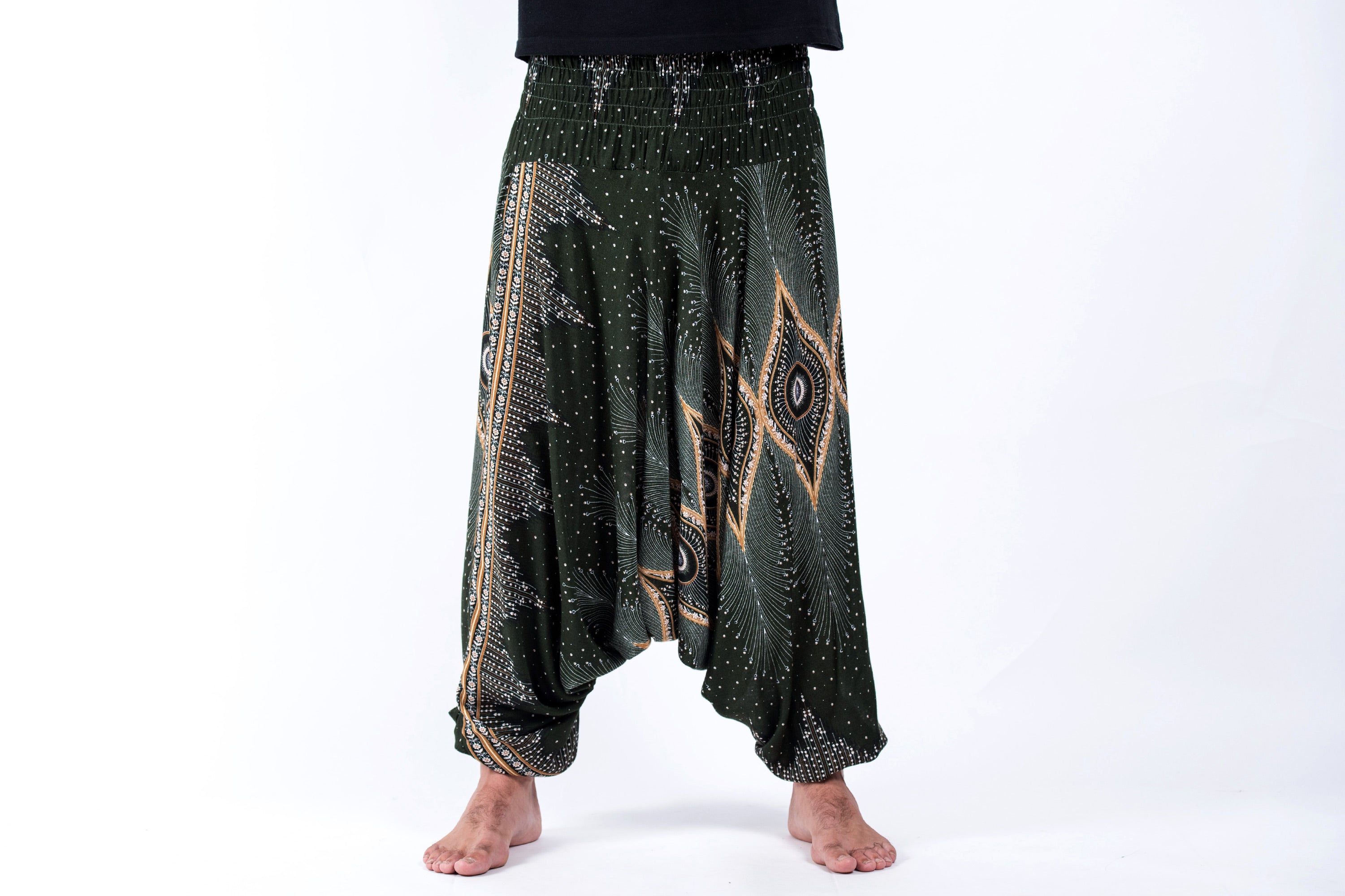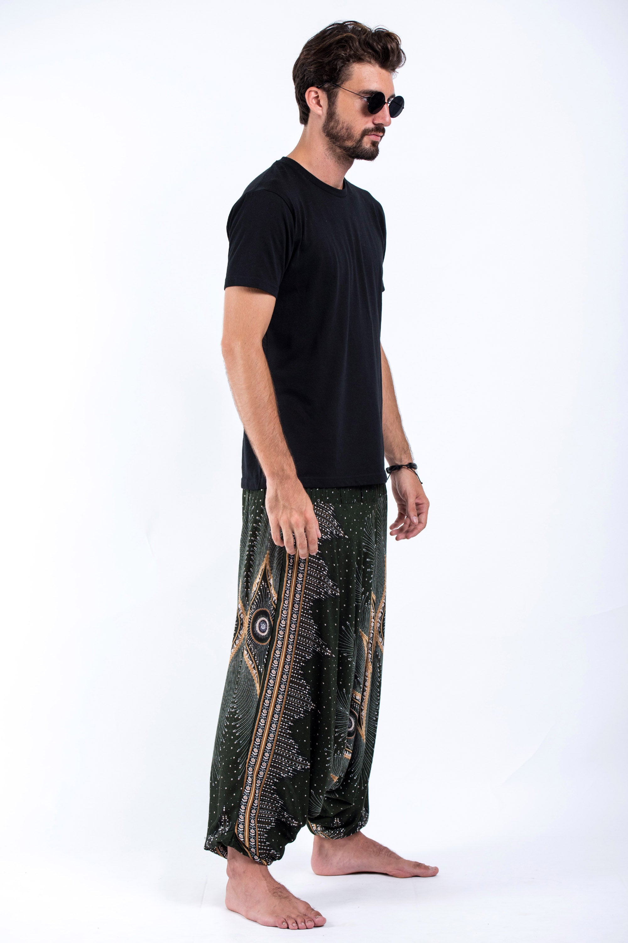 Diamond Peacock Drop Crotch Men's Harem Pants in Green