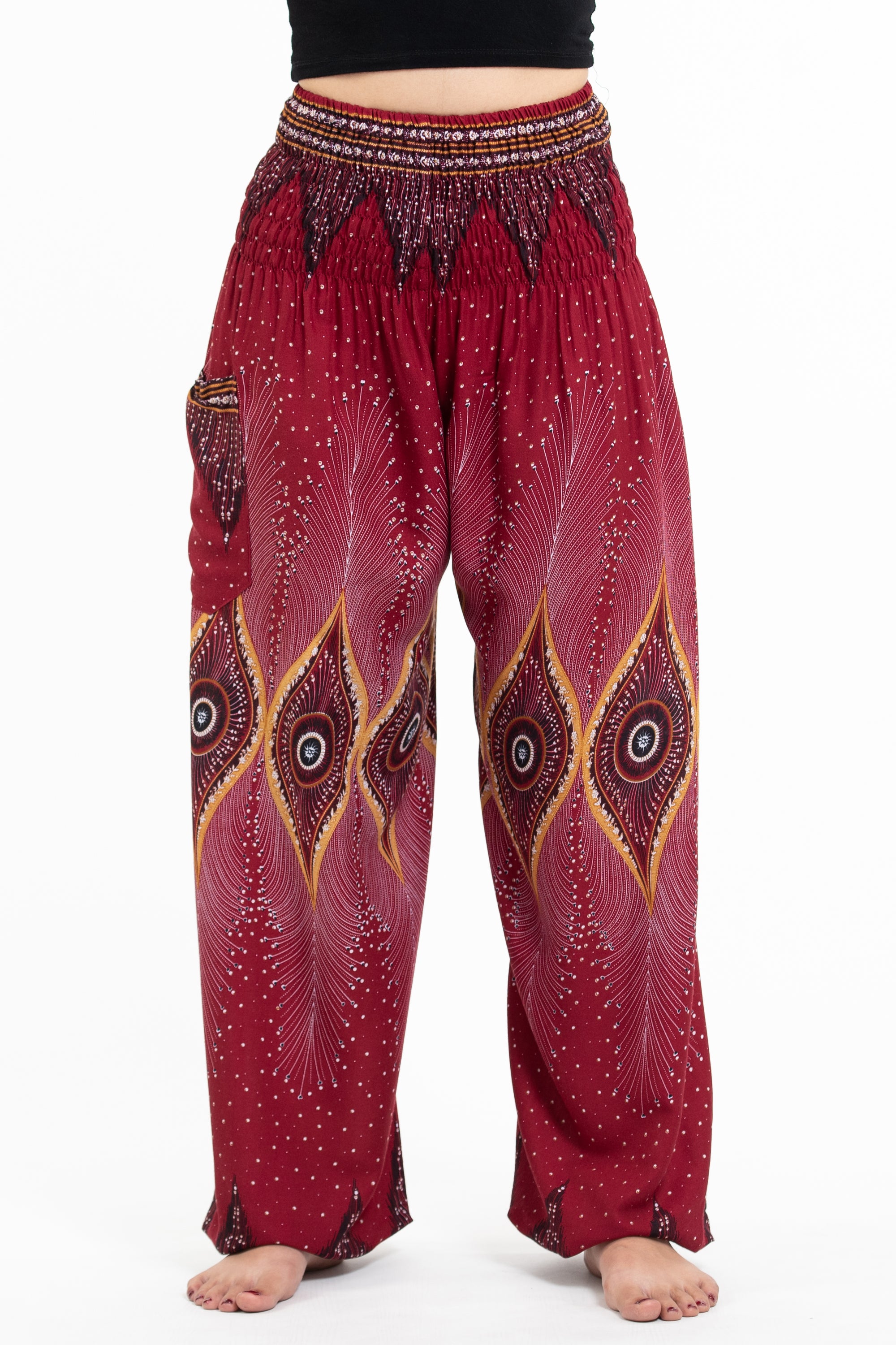 All these high cut gender neutral harem pants have comfy smocked waist and one side-pocket.