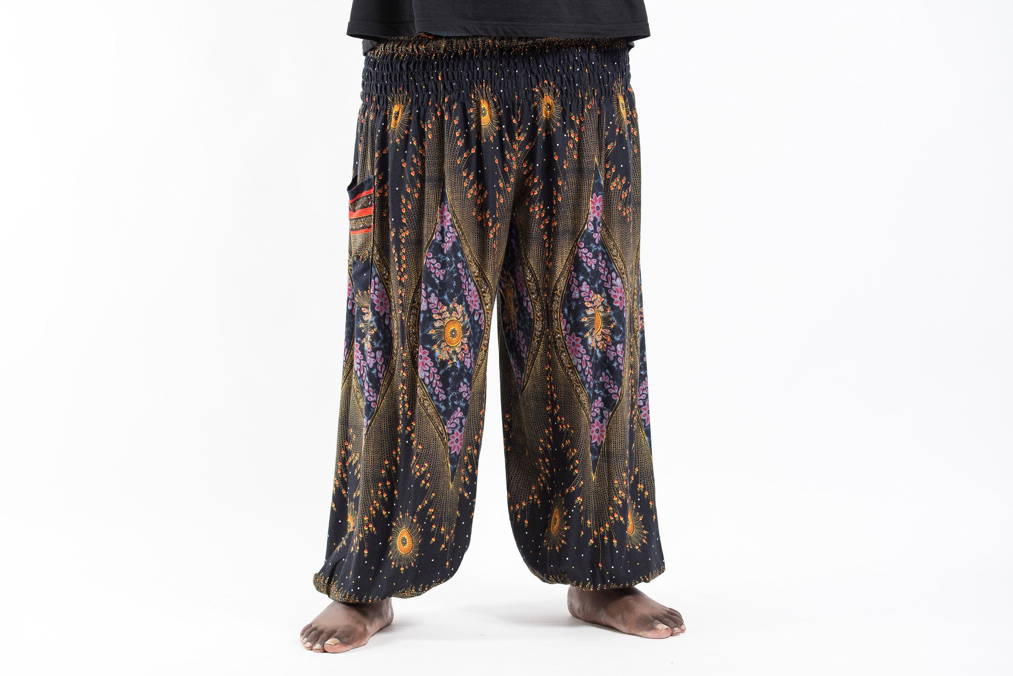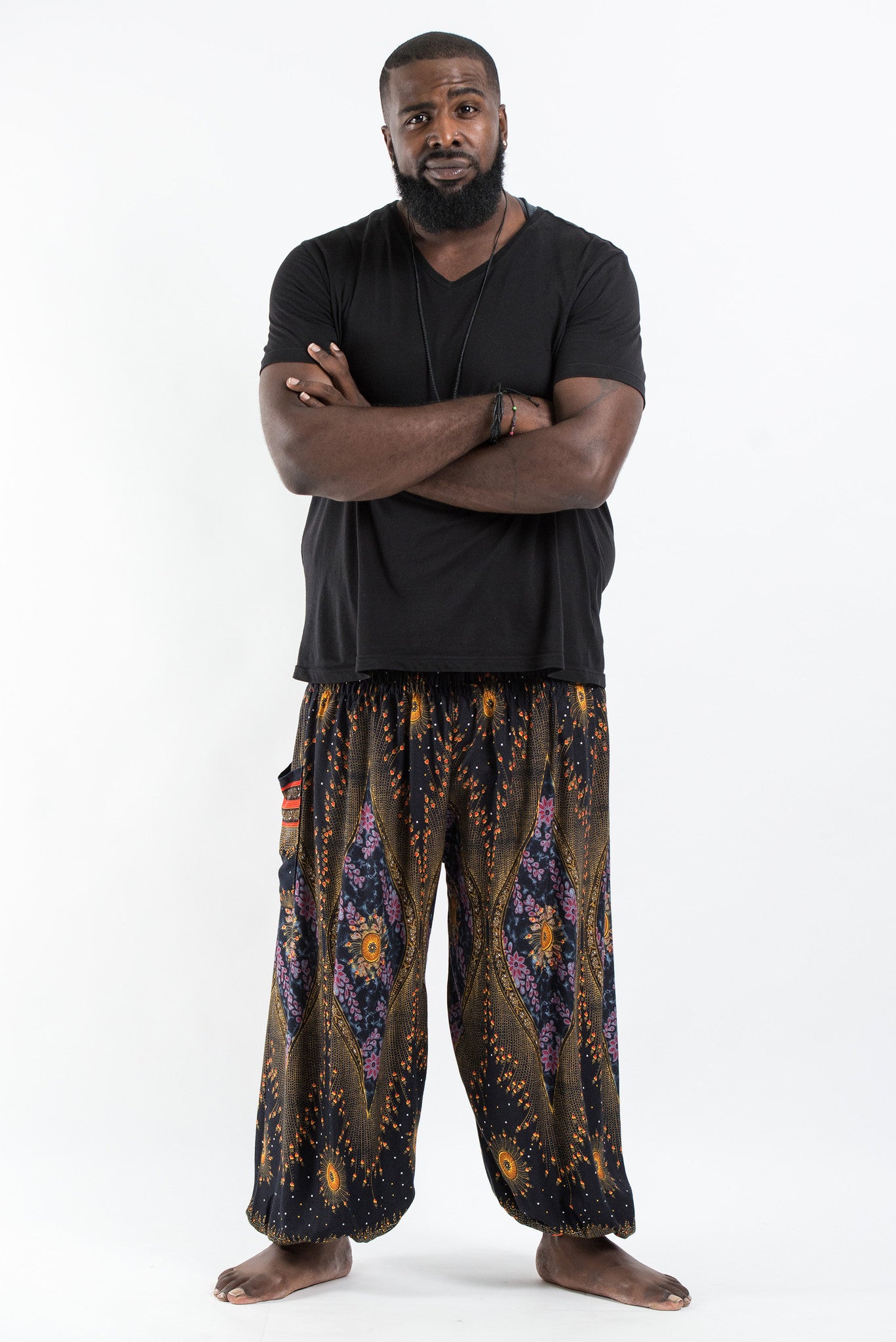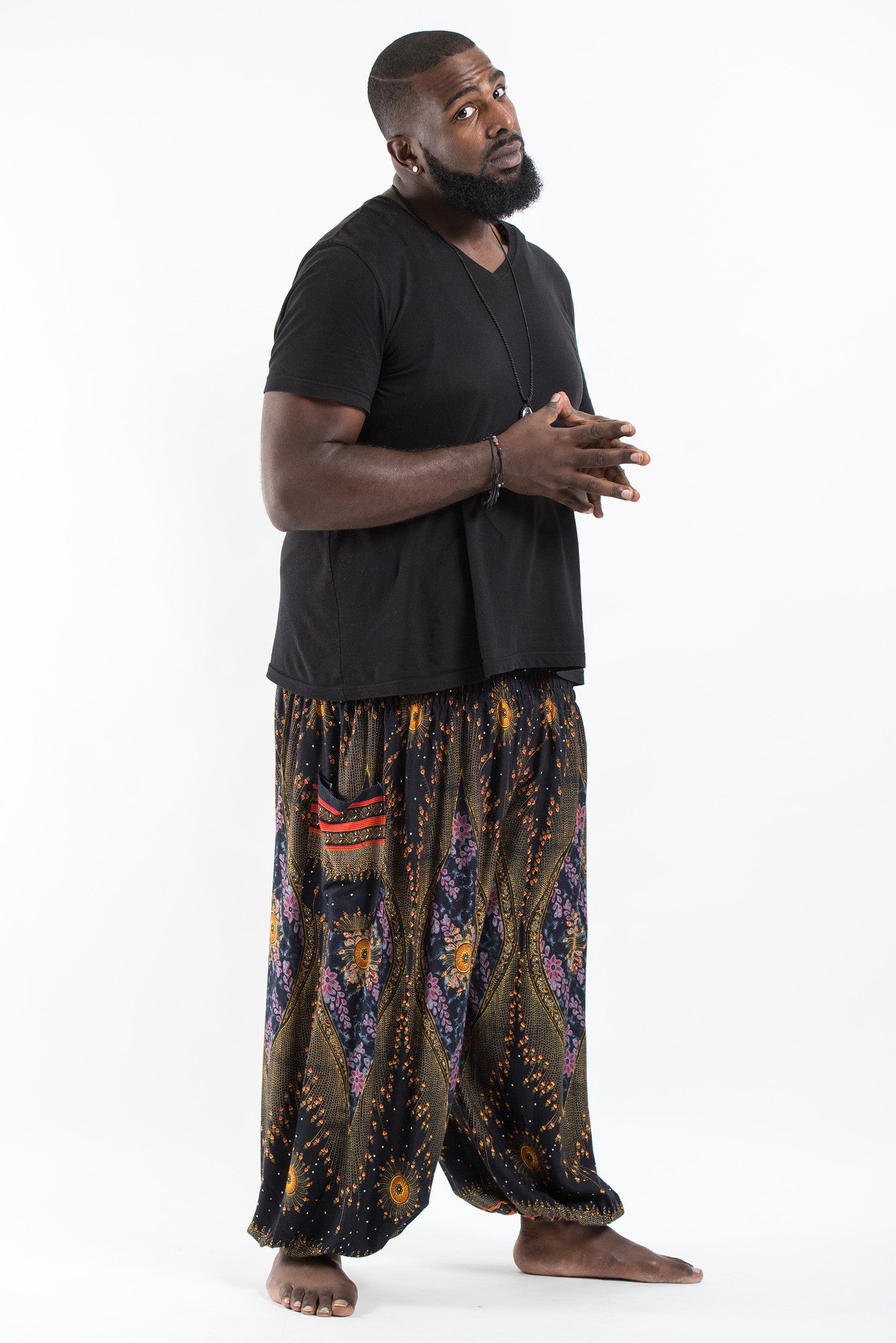 Plus Size Peacock Eye Men's Harem Pants in Black