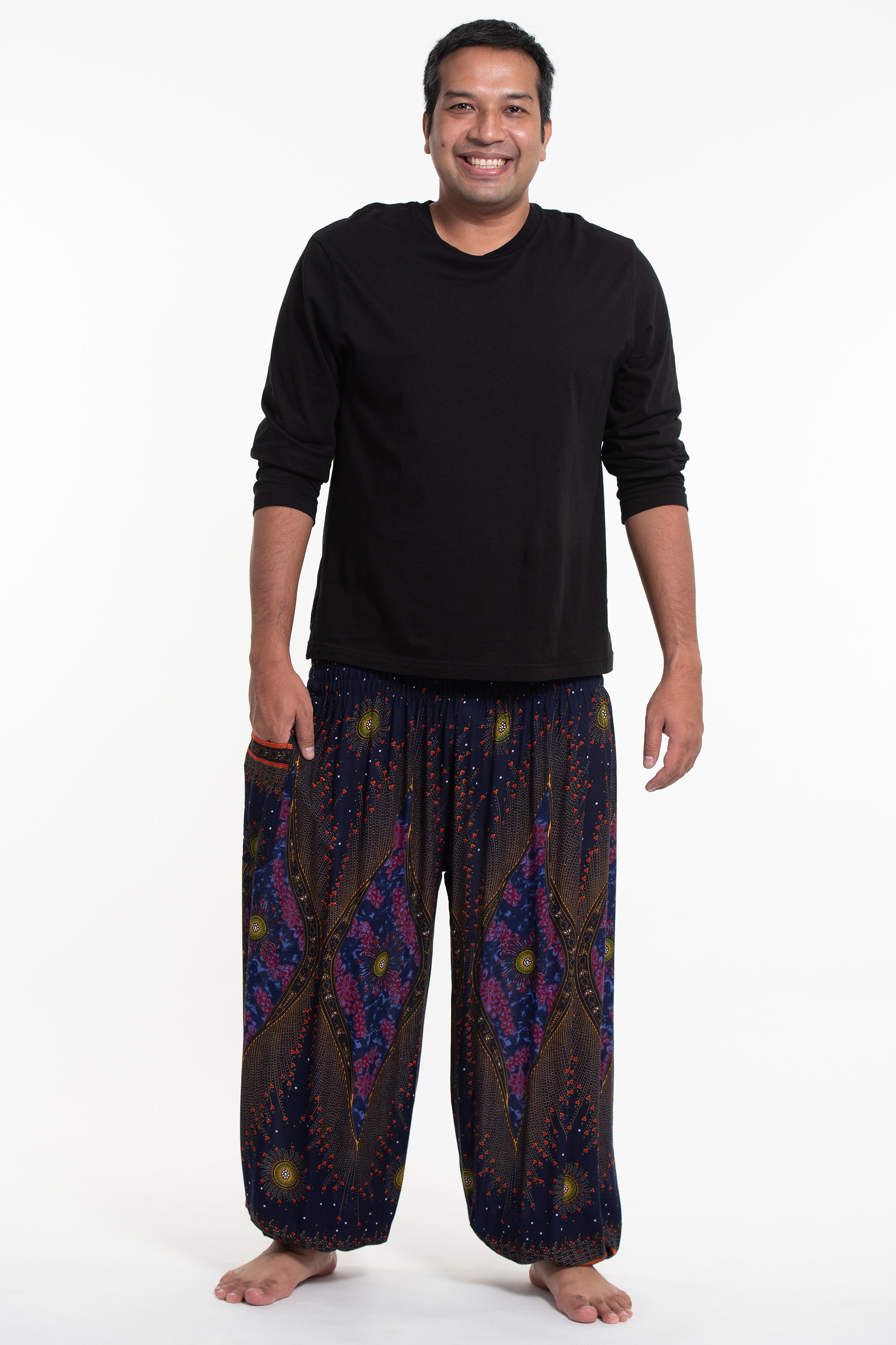 Plus Size Peacock Eye Men's Harem Pants in Navy