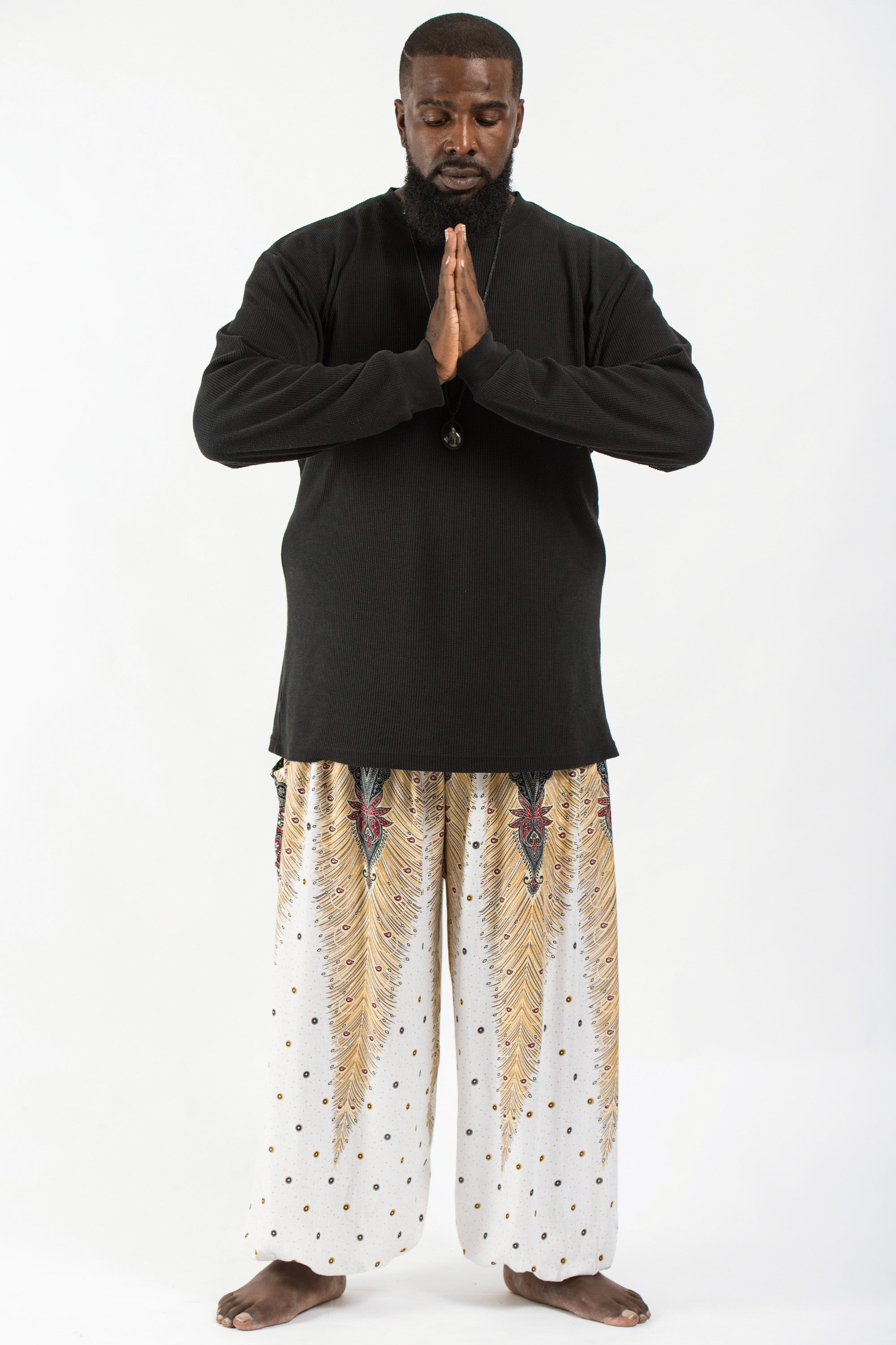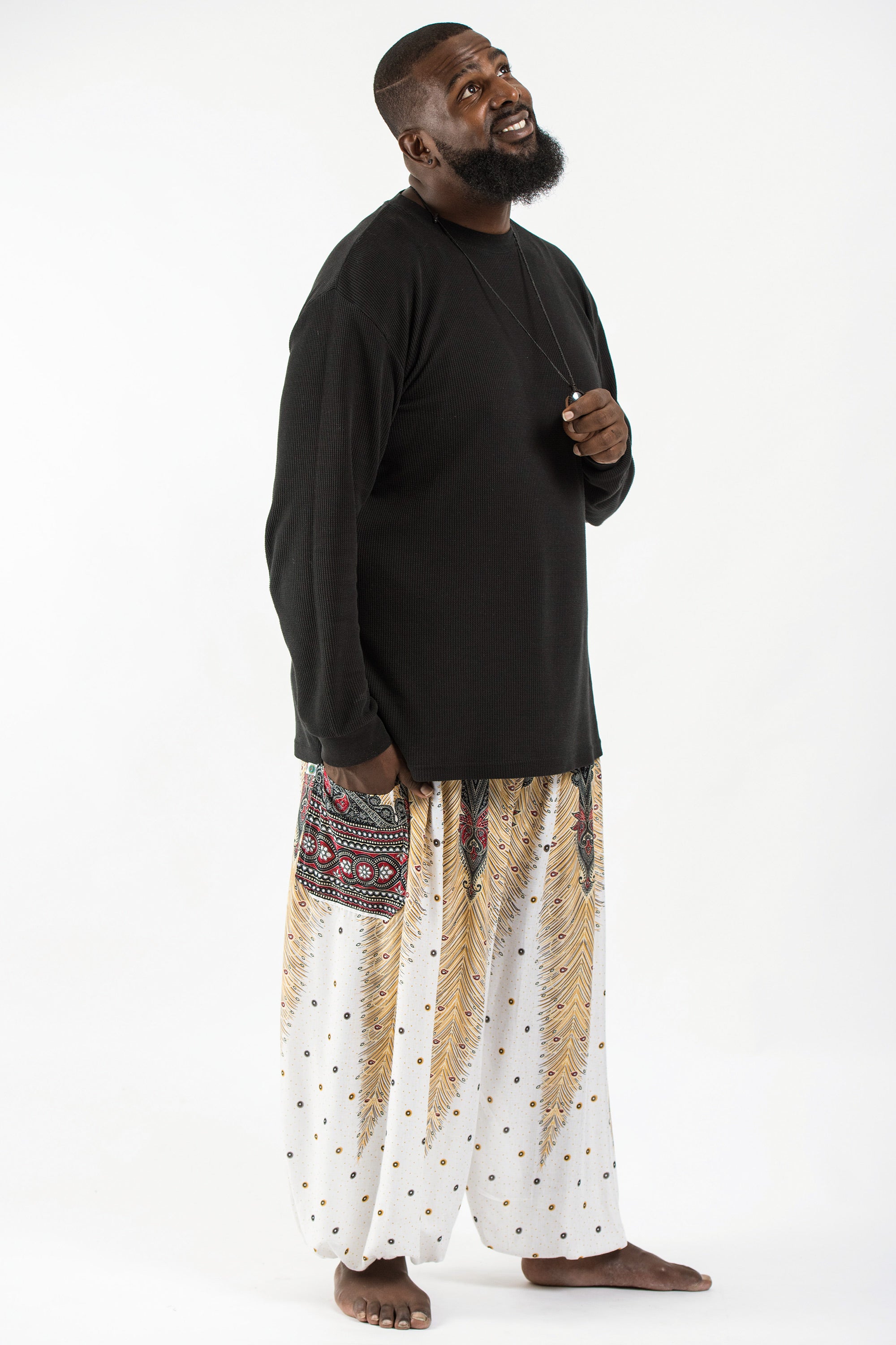 Plus Size Peacock Feathers Men's Harem Pants in White