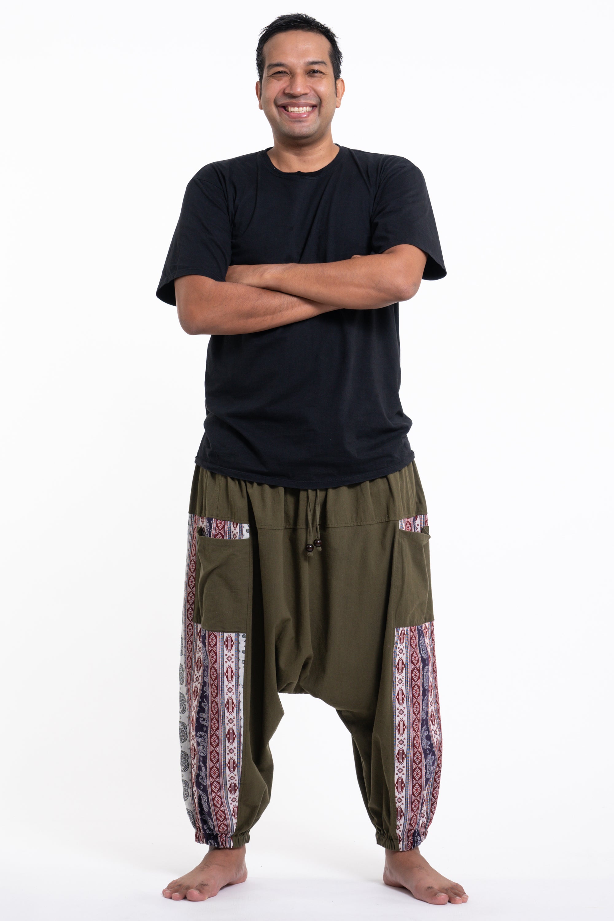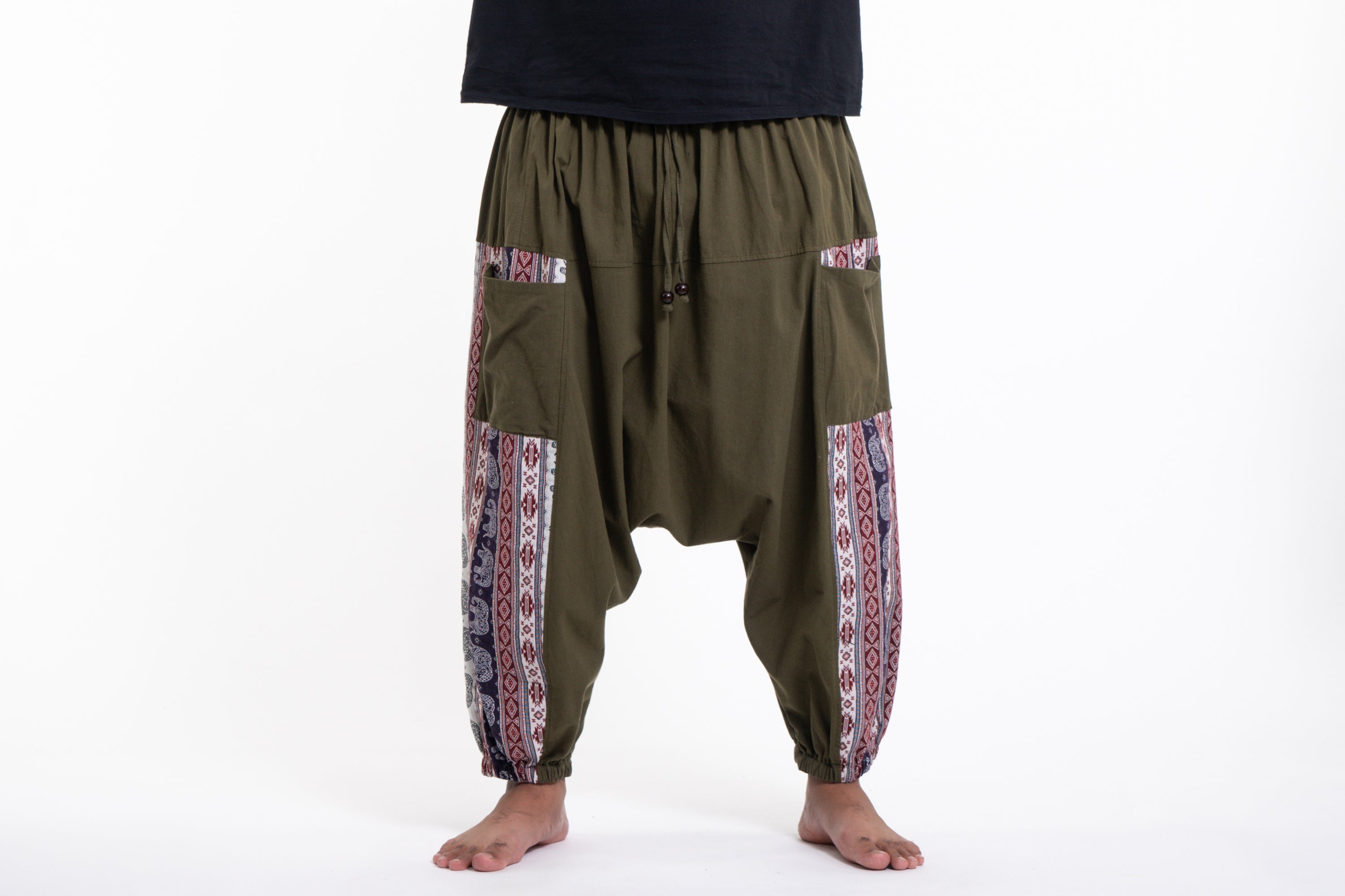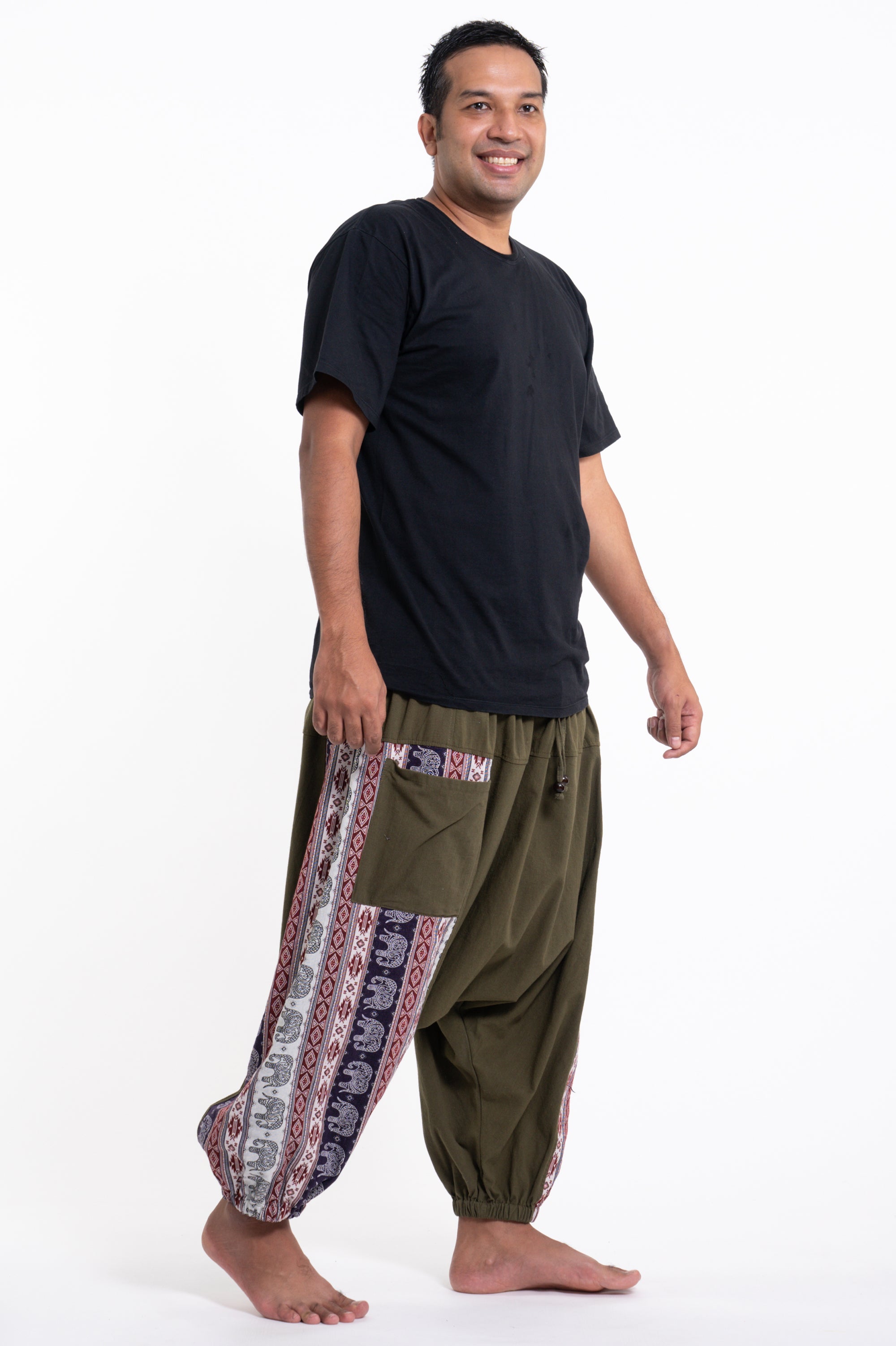 Plus Size Elephant Aztec Cotton Men's Harem Pants in Green