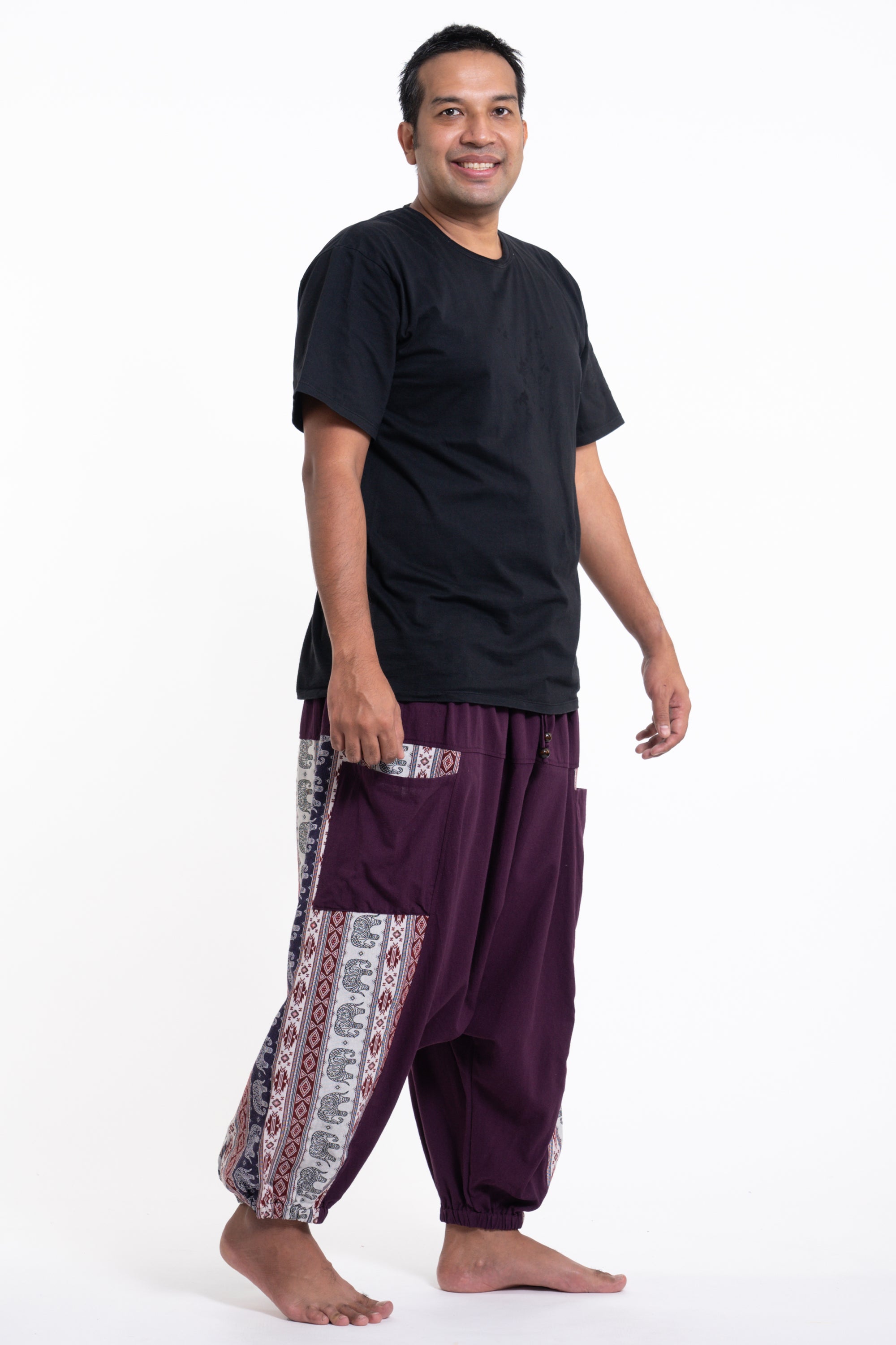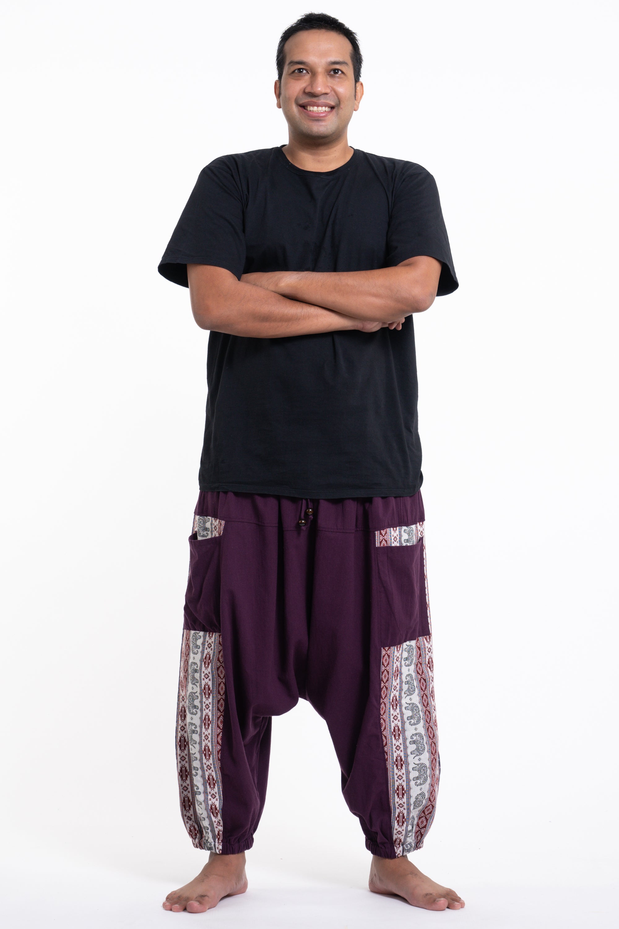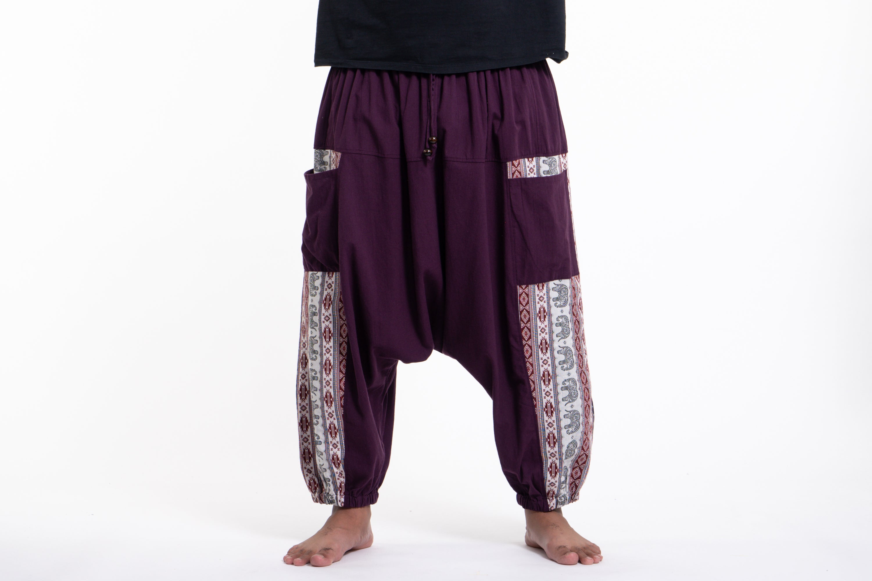 Plus Size Elephant Aztec Cotton Men's Harem Pants in Purple
