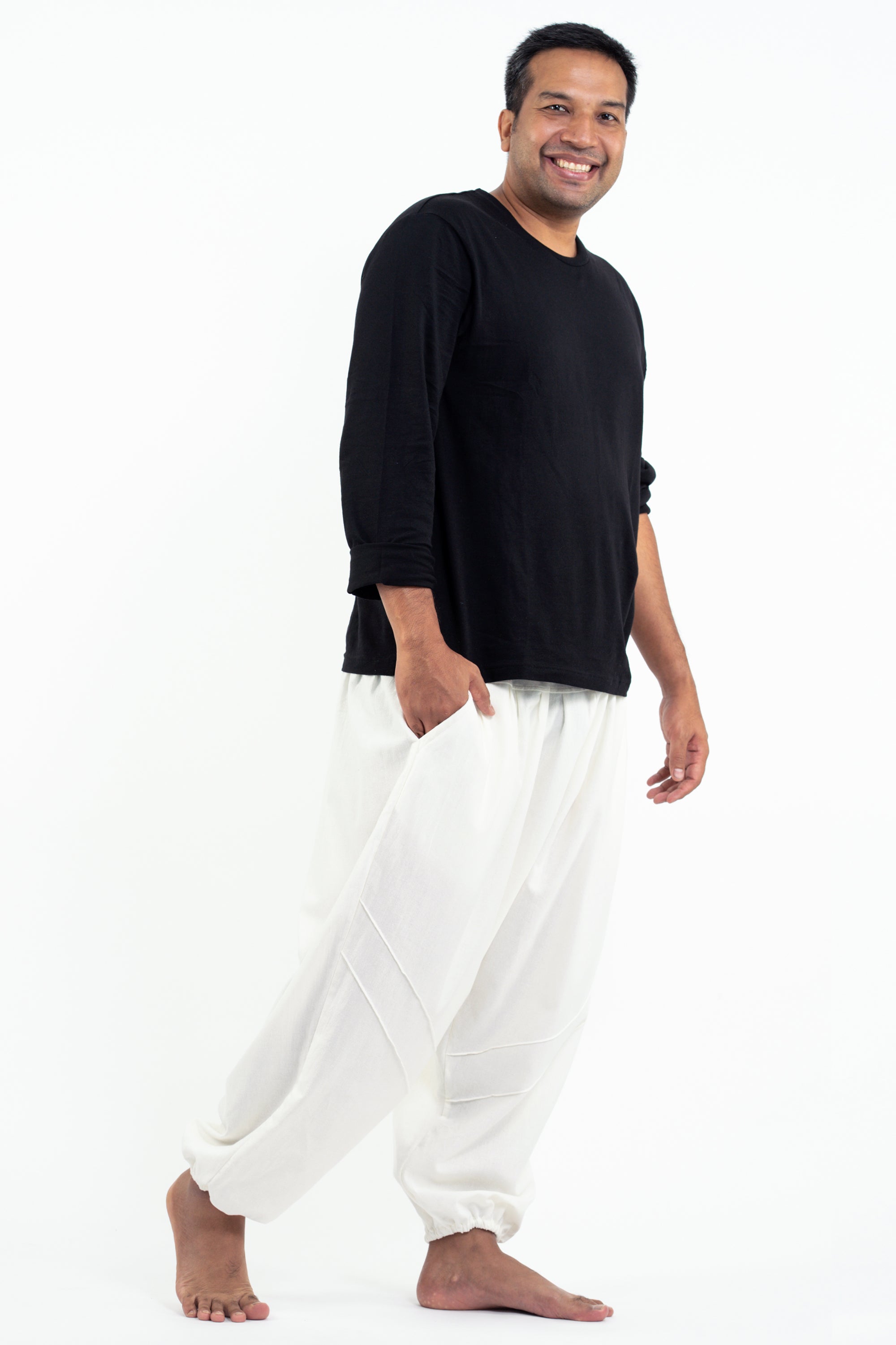 Solid Thai cotton classic genie style harem pants with minimal design on both legs.