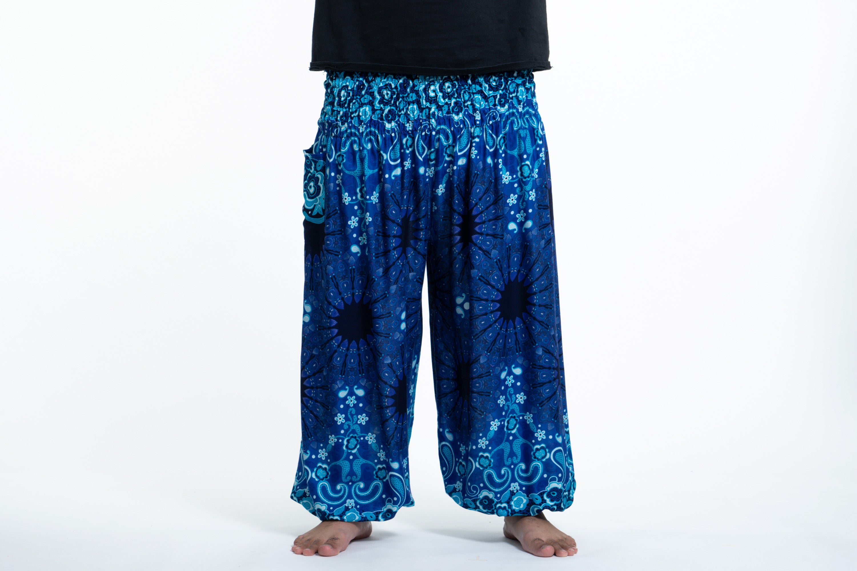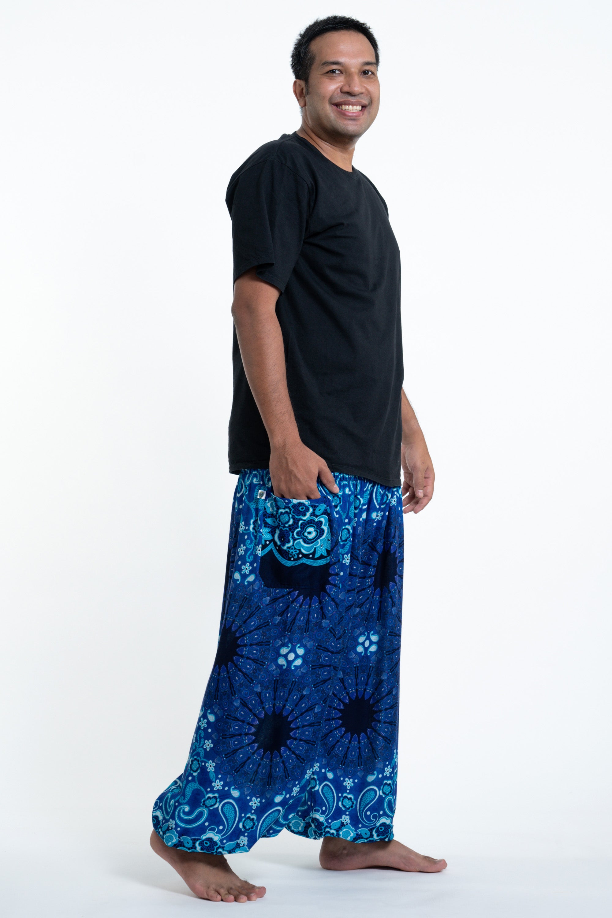 Plus Size Paisley Mandalas Men's Harem Pants in Blue