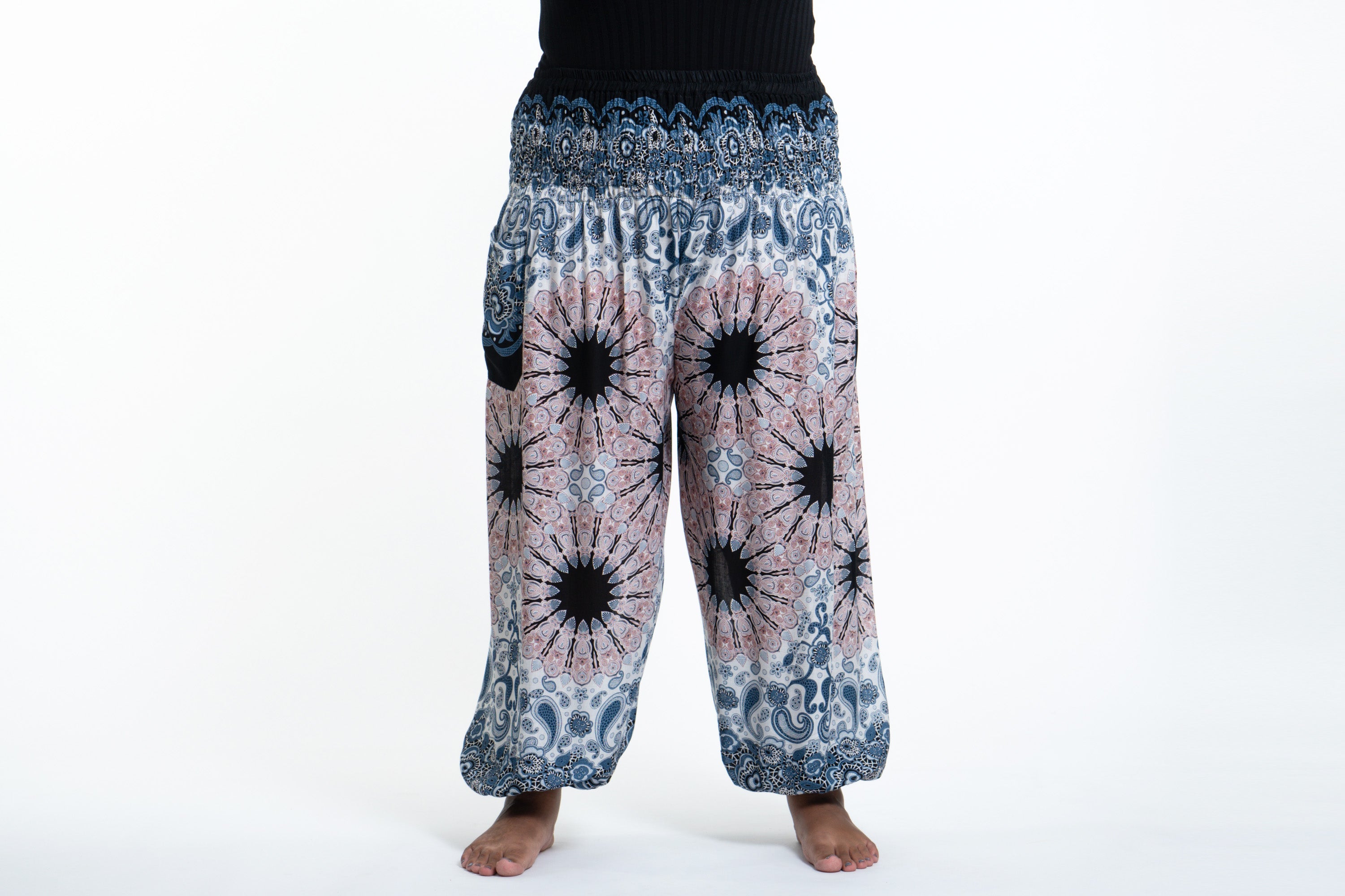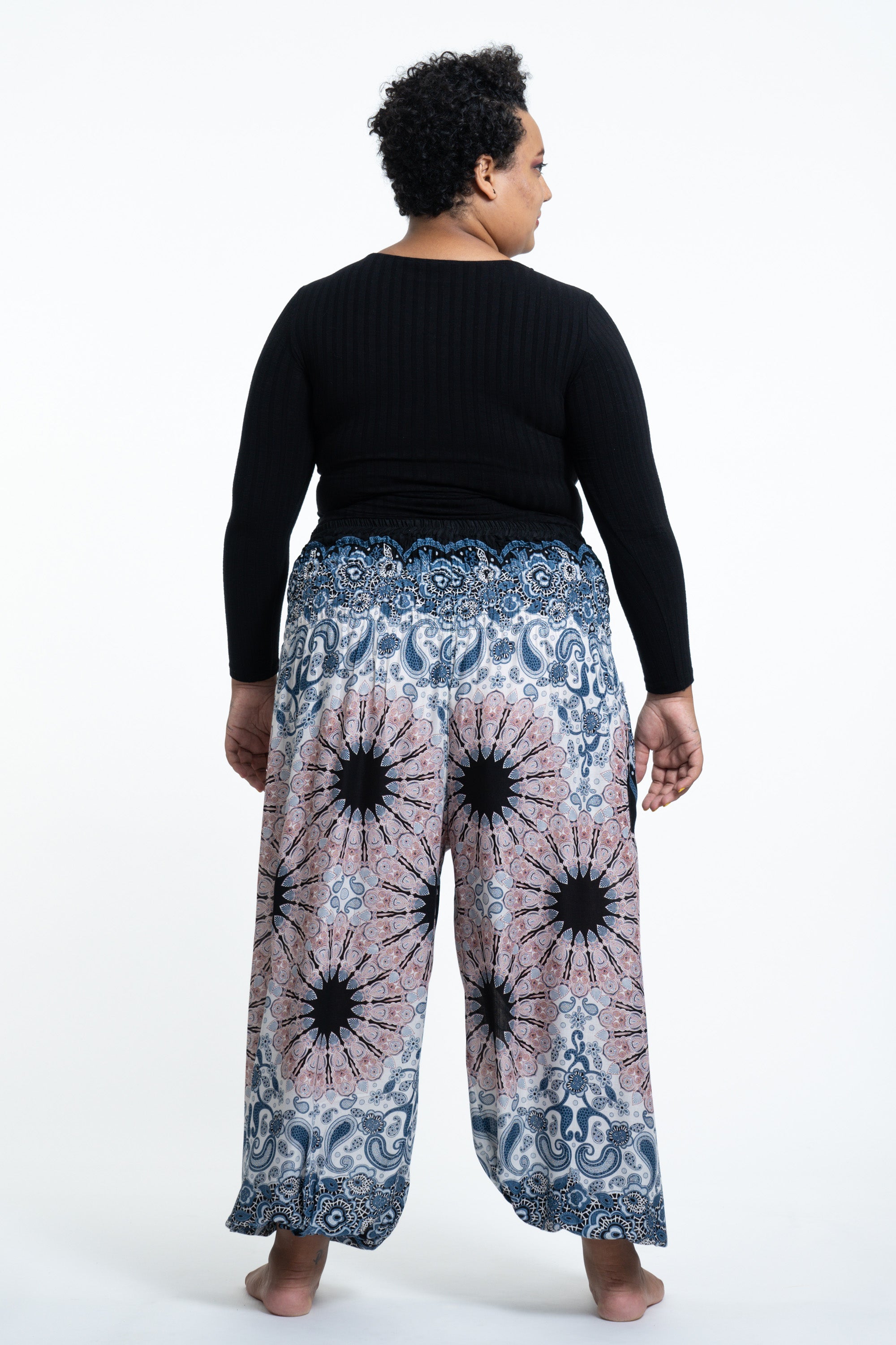 Plus Size Paisley Mandalas Women's Harem Pants in Silver Gray
