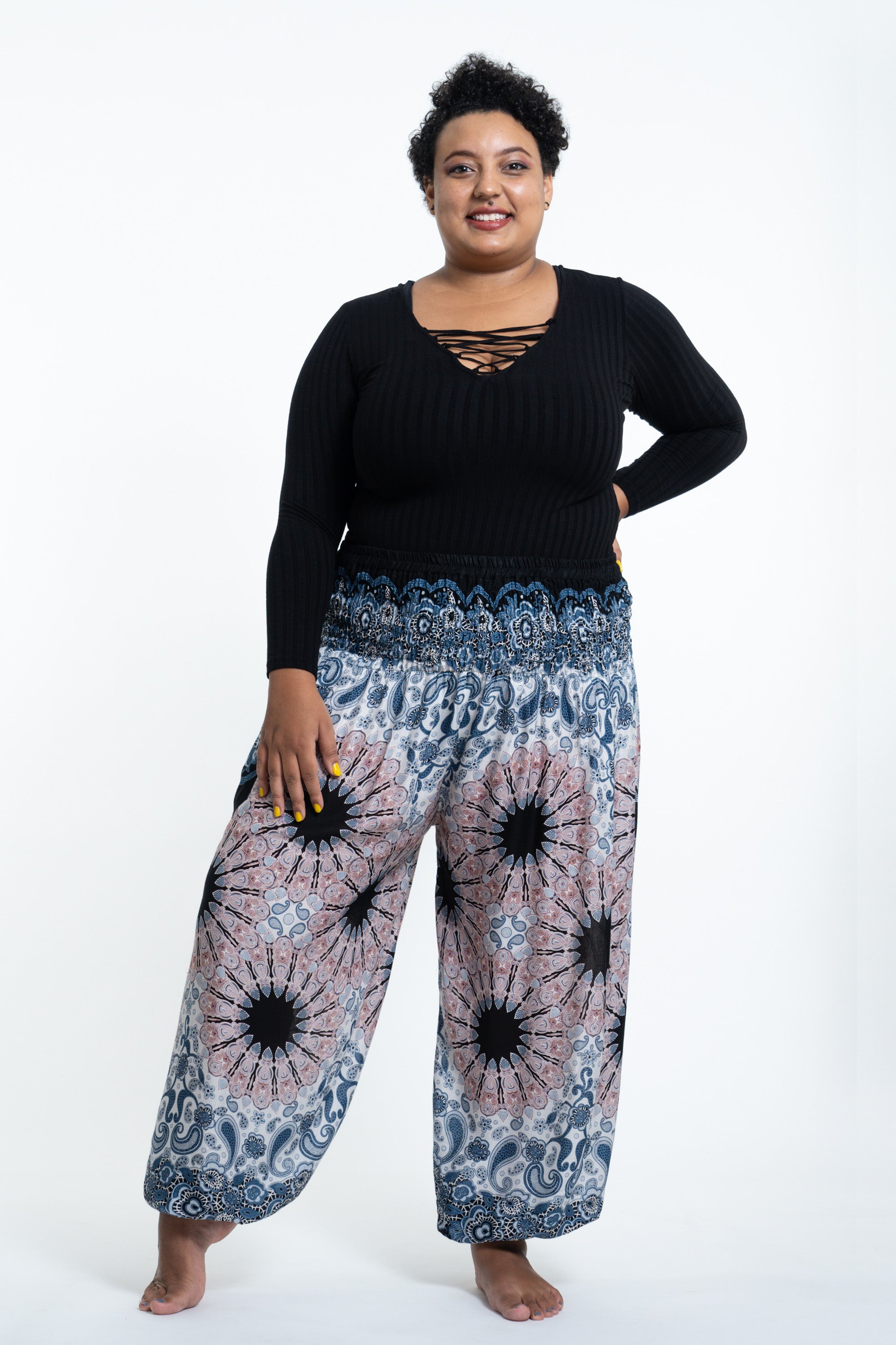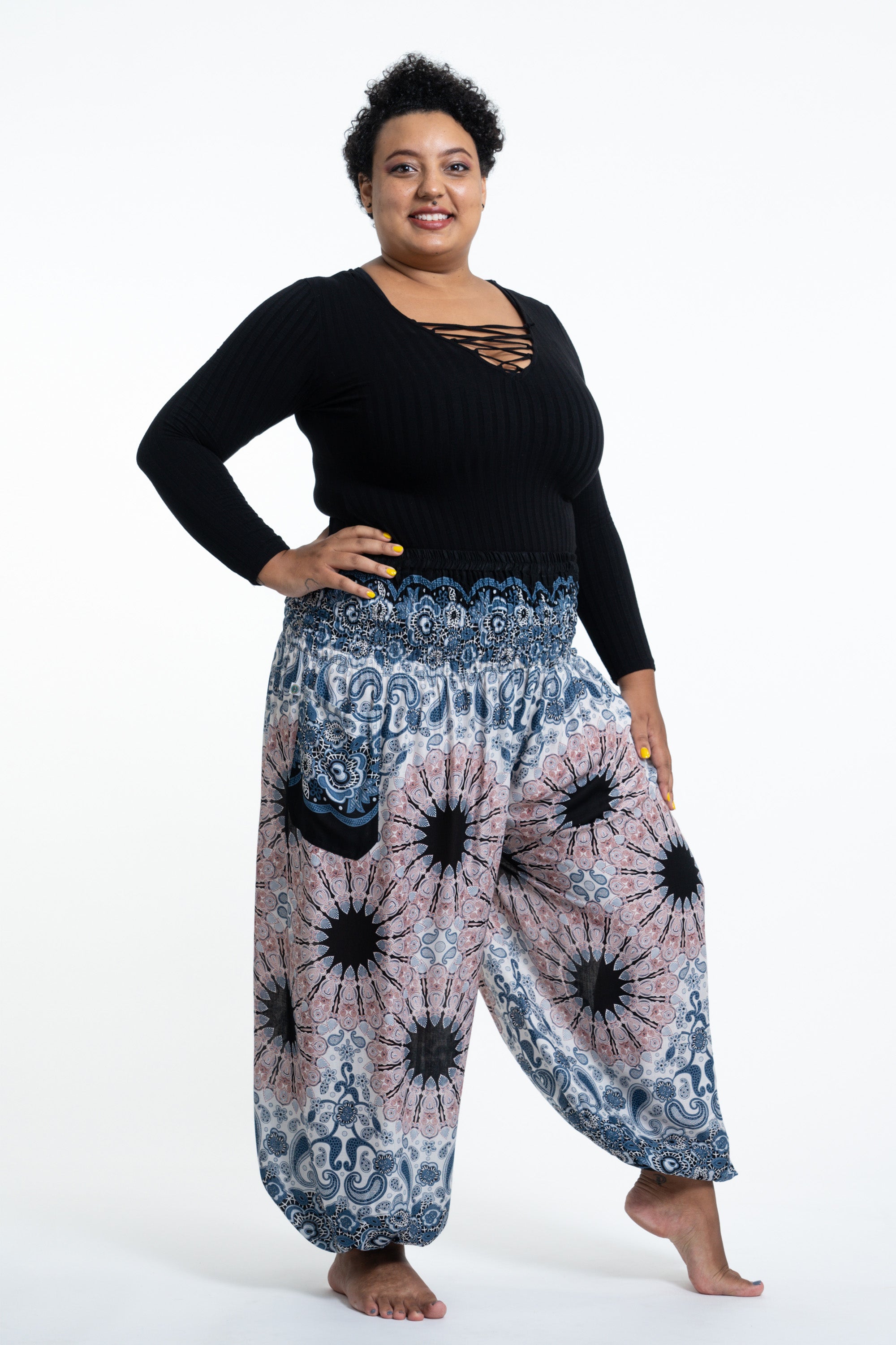 Super Soft Plus Size Thai boho yoga harem pants made with silky lightweight, durable and flowy material. These harem pants offer lots of leg room, while still being complimentary, making this pants wearing experience the most comfortable ever!