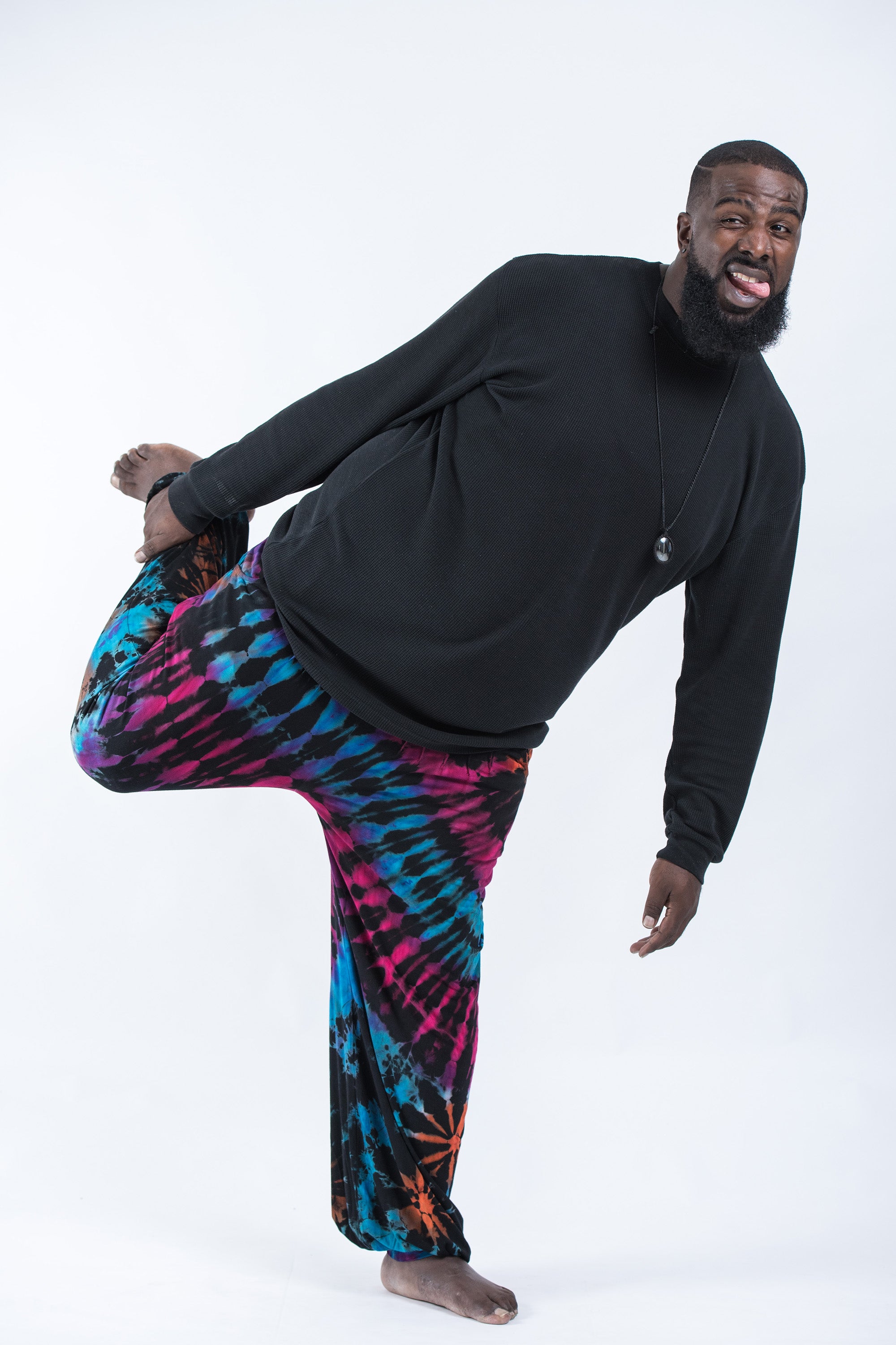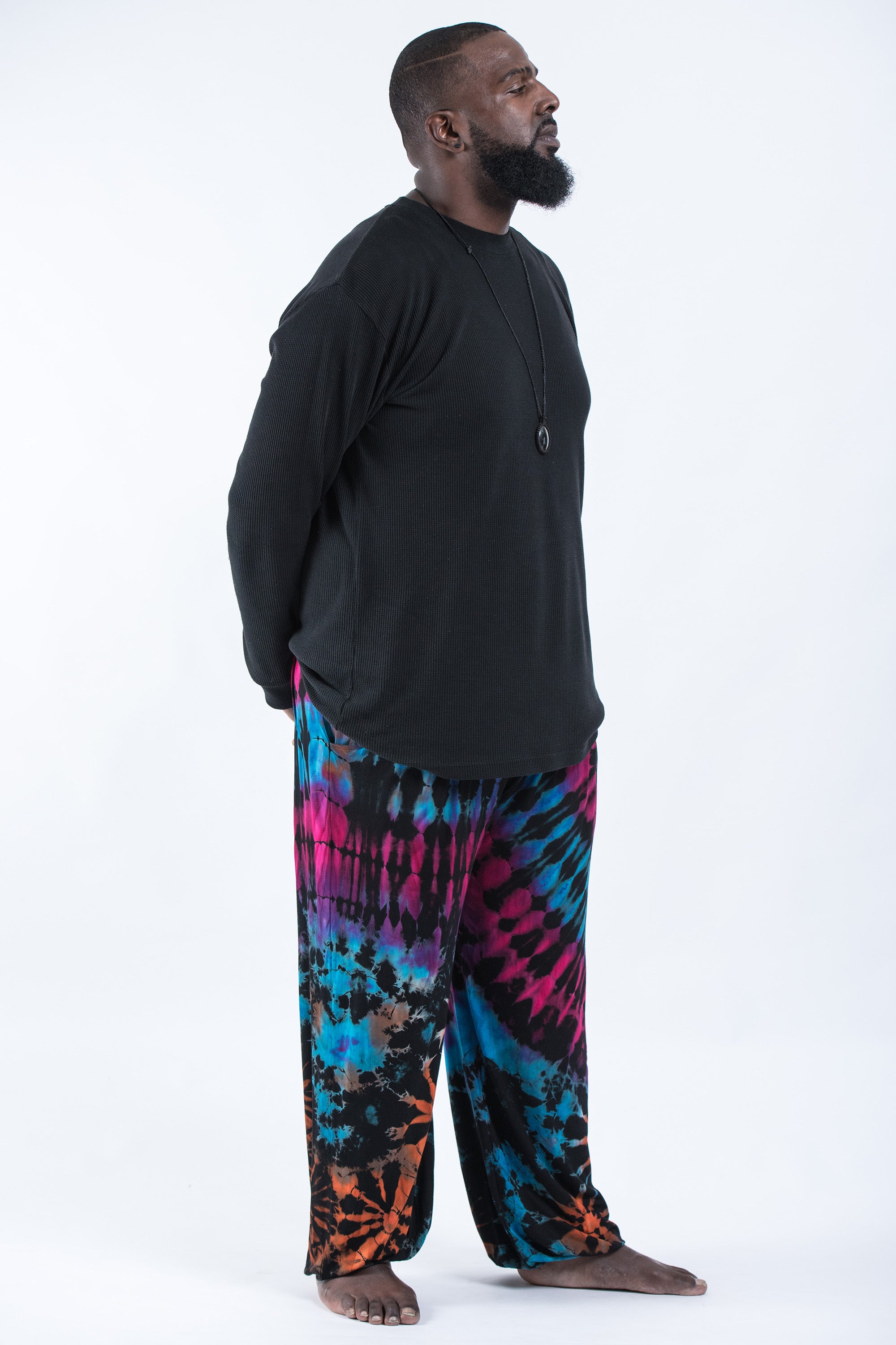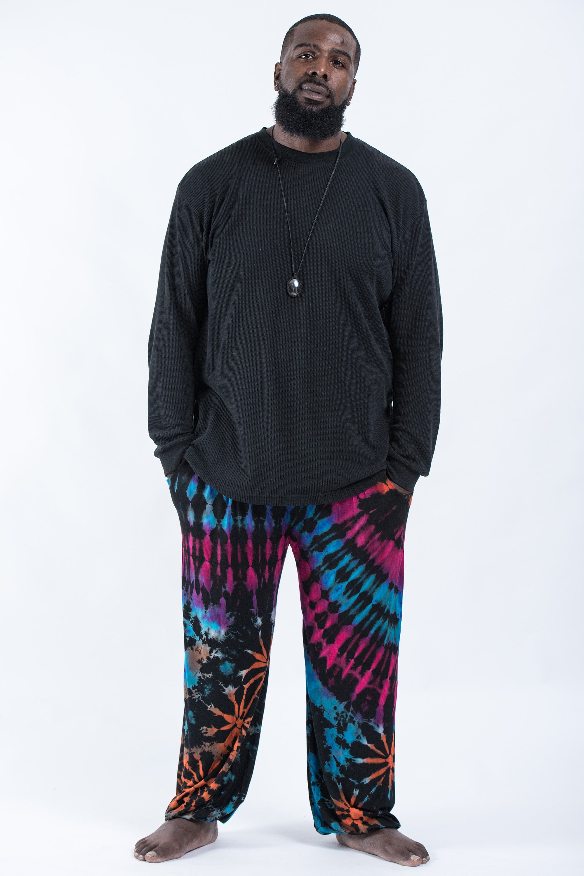 Plus Size Tie Dye Cotton Men Harem Pants in Festival Black