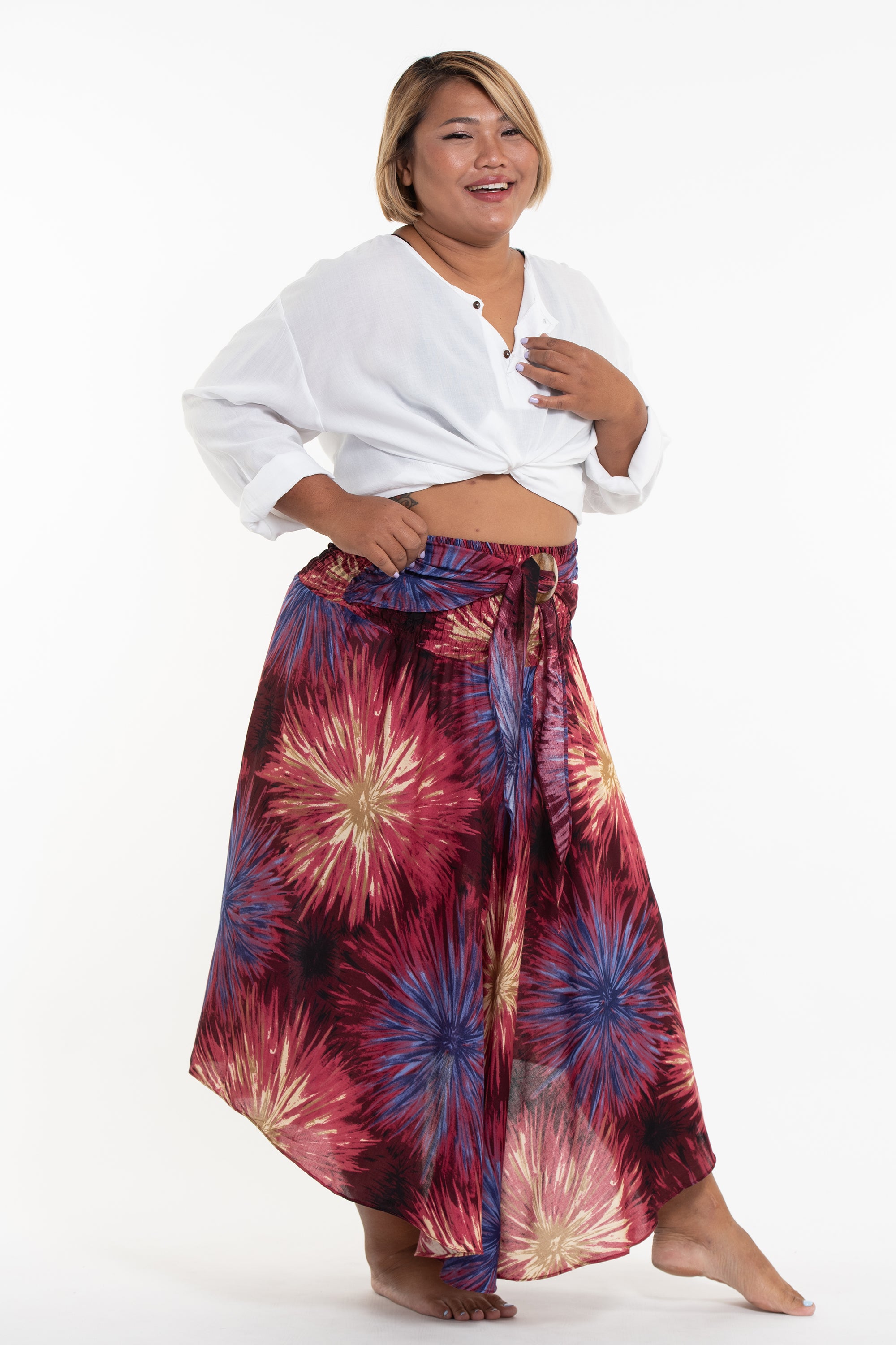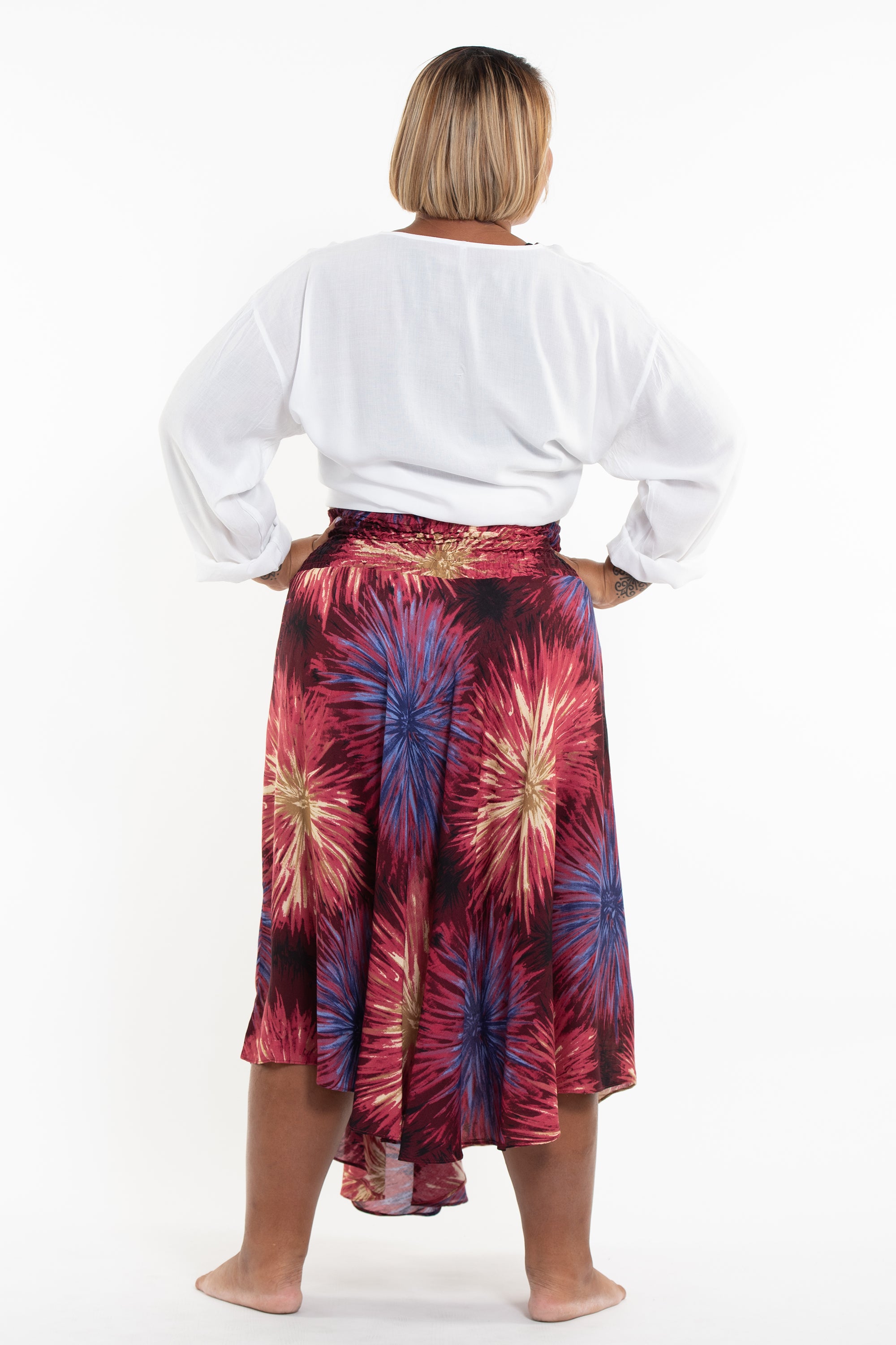 Unfortunately, I find myself yet again at the cusp between regular and plus size. I ordered the skirt and a dress in plus to see if that's where I needed to be. They both are pretty roomy, yet I can wear them. Okay, that said, the skirt is just beautiful. I'm 5' 3", and like I said, on the edge of plus size, so it's hard to fit someone like me. The skirt is roomy and nonconstricting and surprisingly not too long! On me, it comes to almost ankle length. I might have gotten away with the regular size, but this works. This will be a welcome addition to my spring and summer wardrobe with such airy fabric. I would recommend any of the skirts.