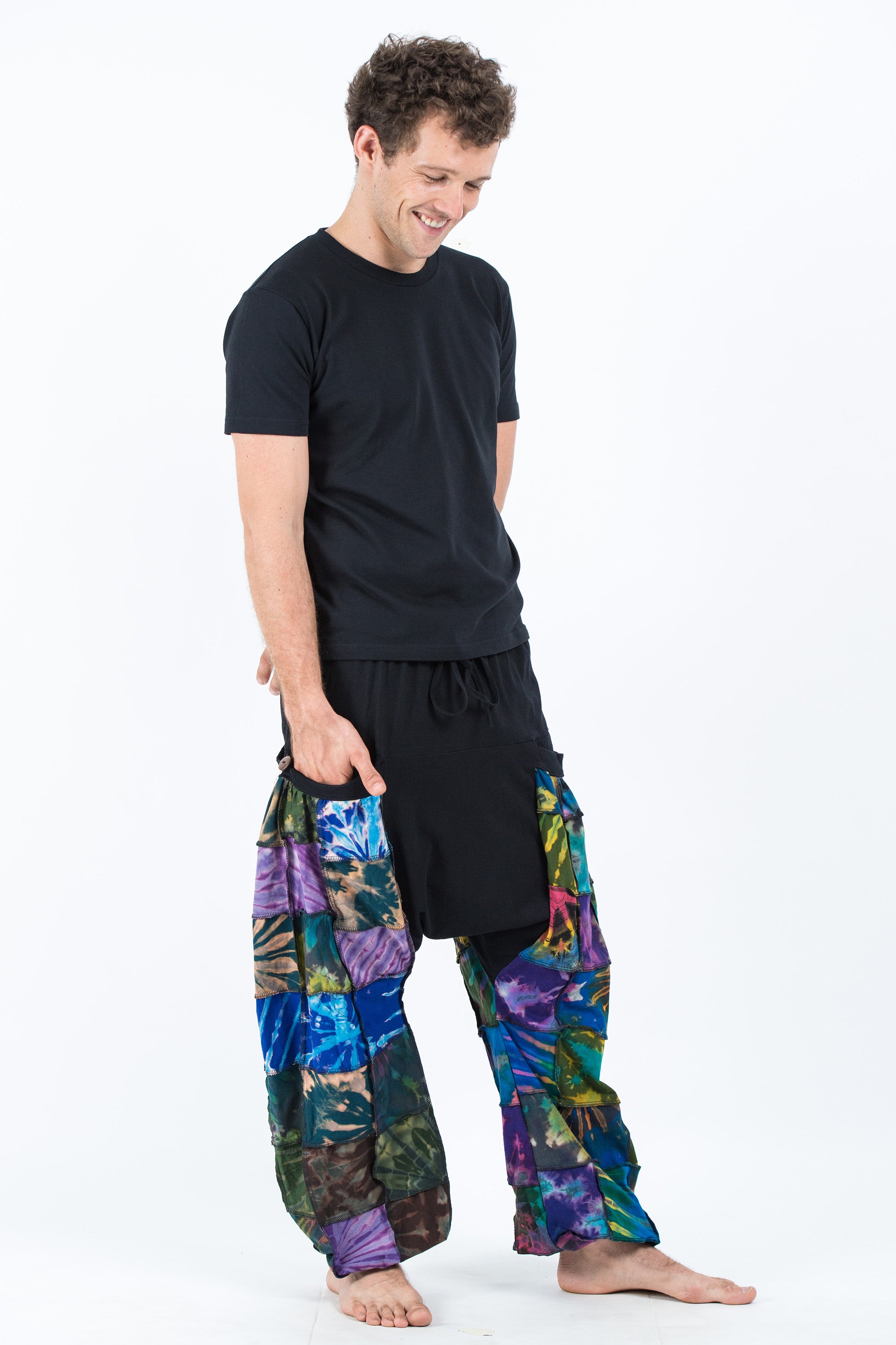 Tie Dye Cotton Men Harem Pants in Patchwork Black