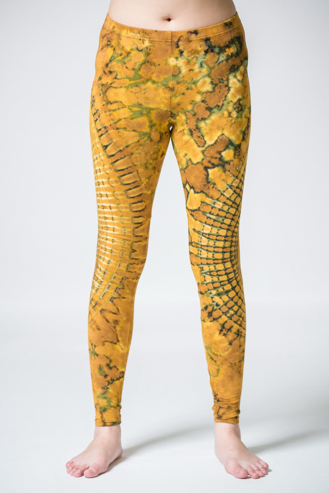 Oval Swirls Tie Dye Cotton Leggings in Yellow