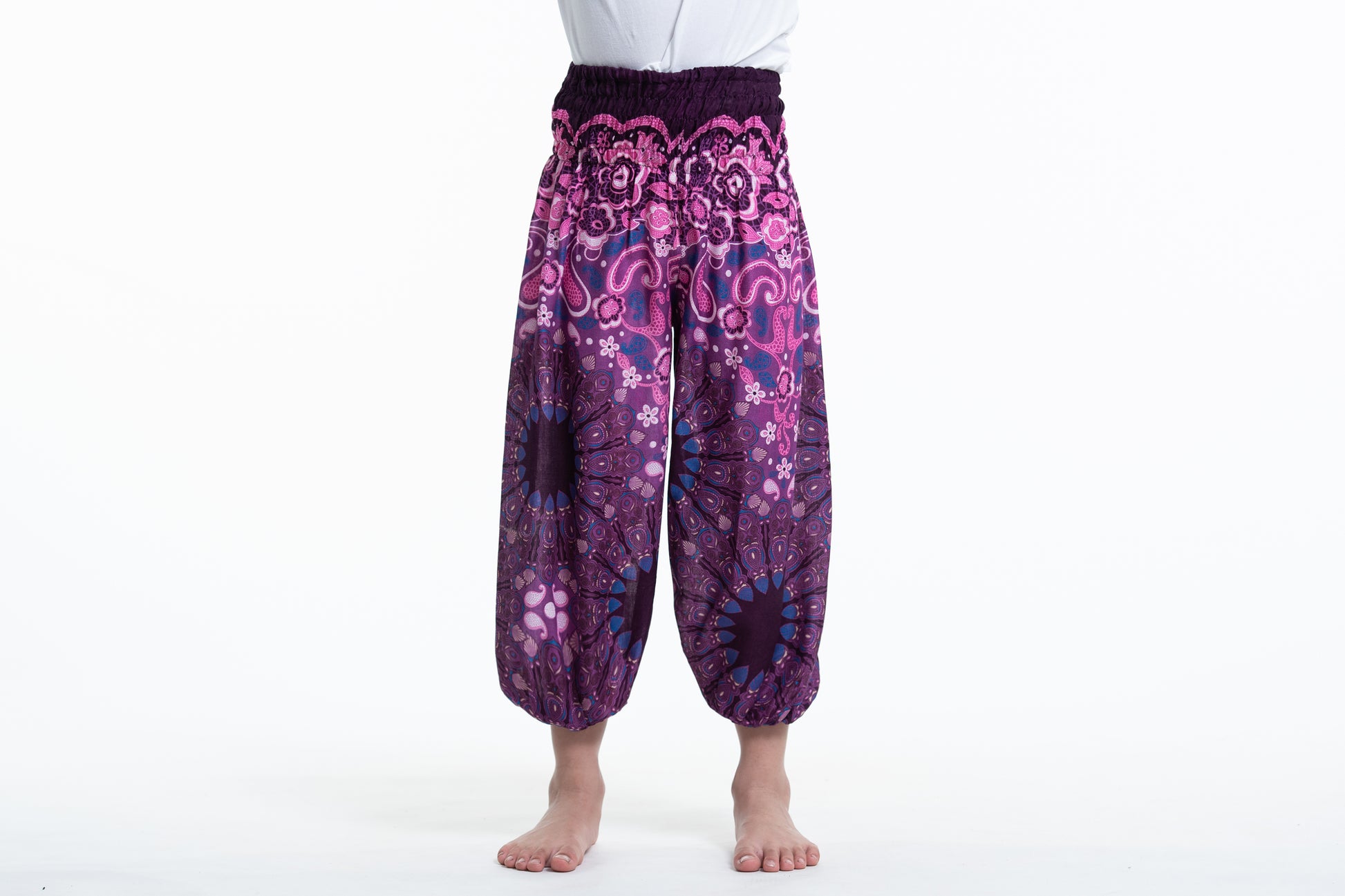 Paisley Mandalas Kids Harem Pants in Purple