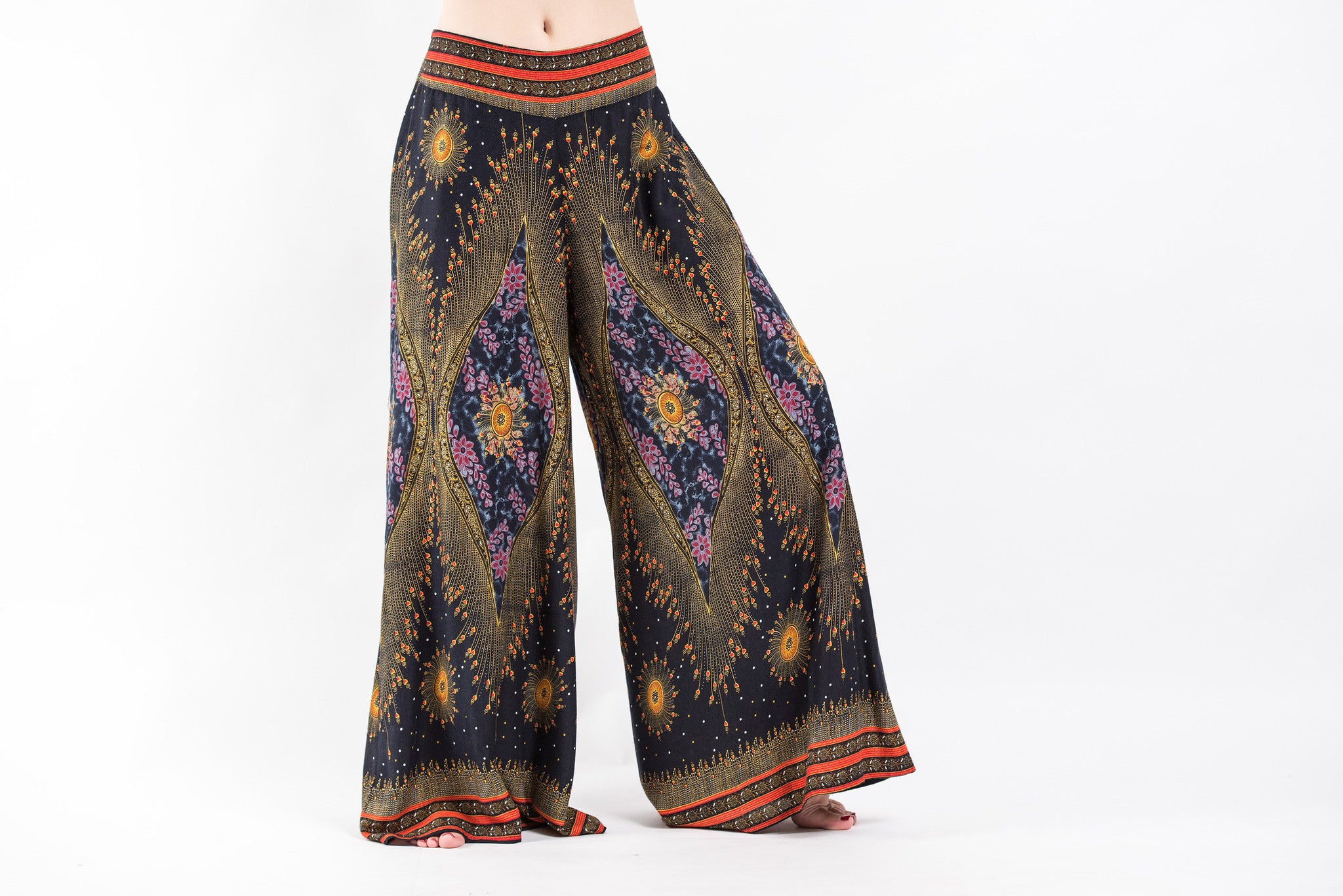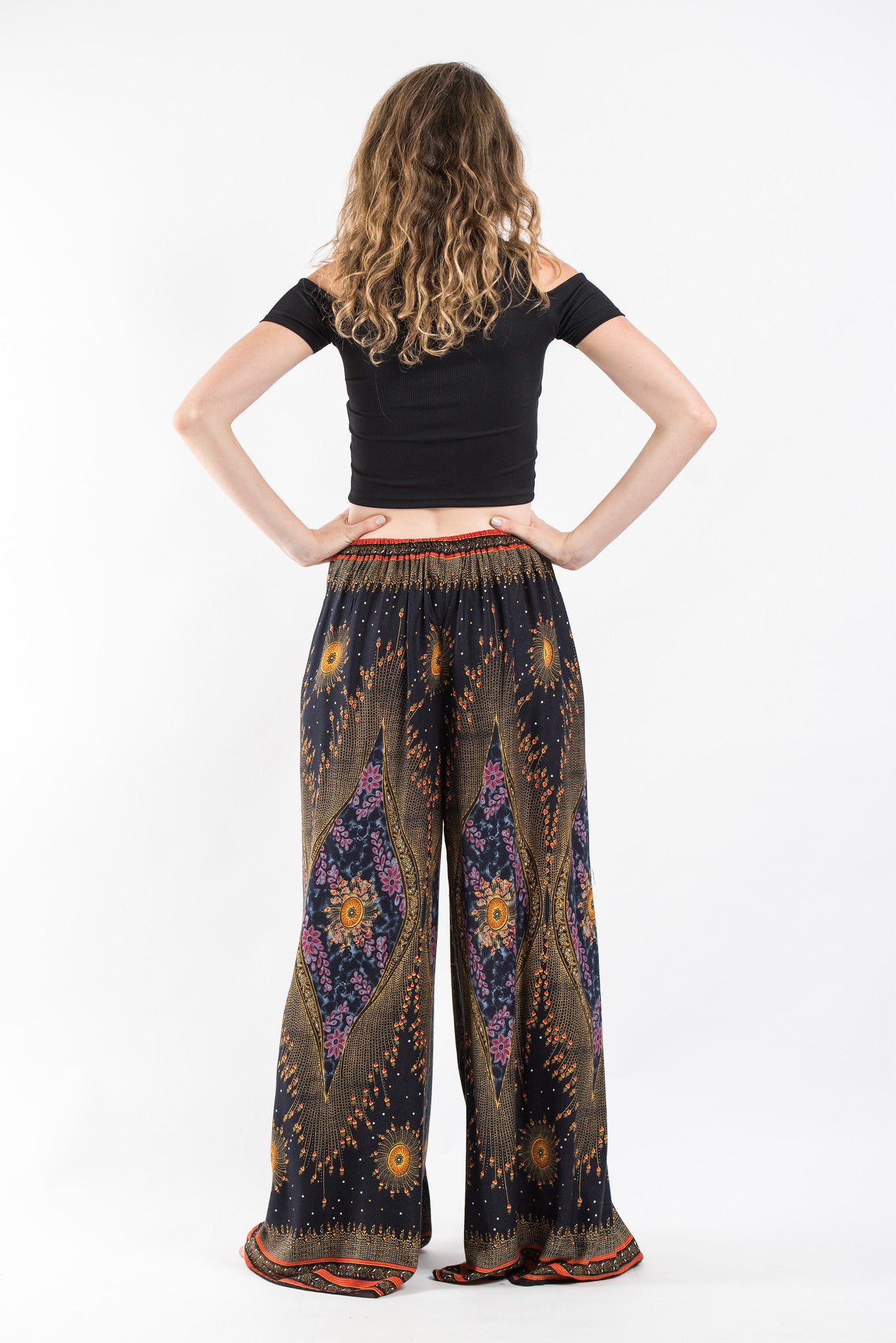 Peacock Eyes Palazzo Style Harem Pants in Black
