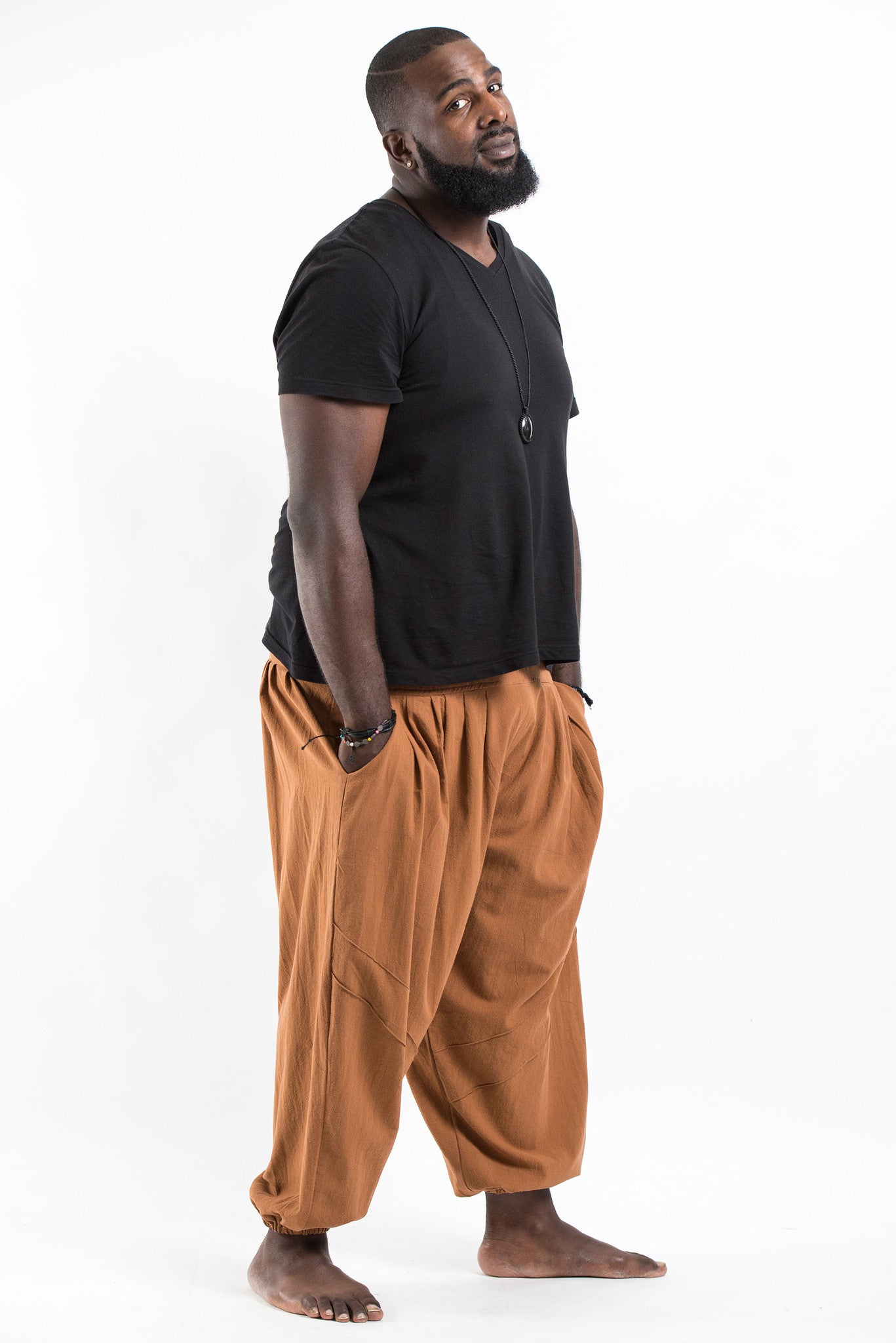 Plus Size Genie Men's Cotton Harem Pants in Brown