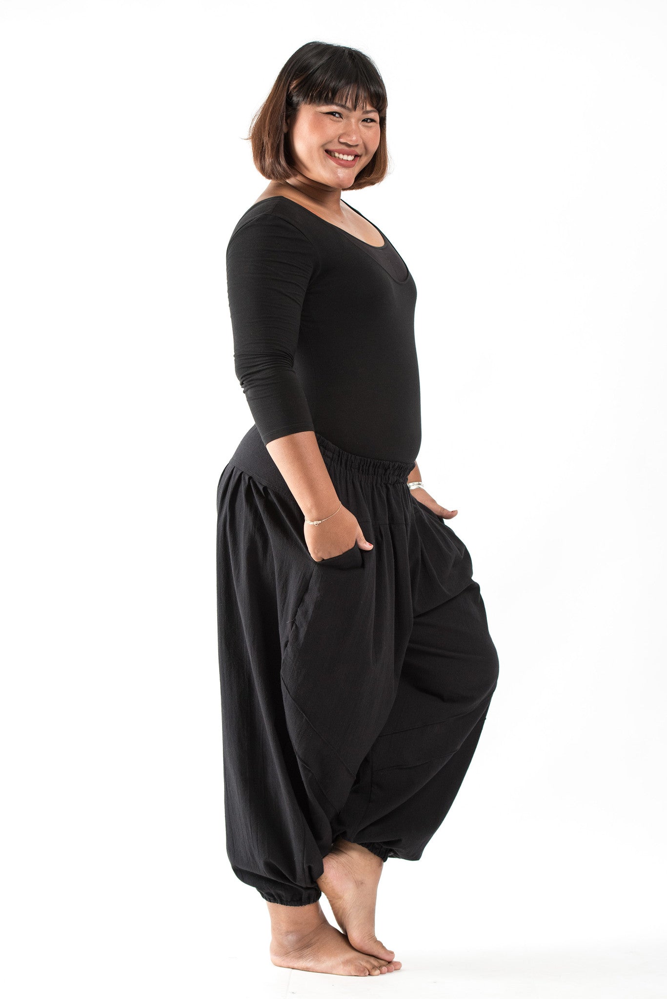 These are truly great pants! I’ve been wanting solid black harem pants for a long time. The only reason I didn’t give 5 stars is because the waist band is snug. I’m hoping I will be able to find a different solid black pair to order. I still wear these a lot.
