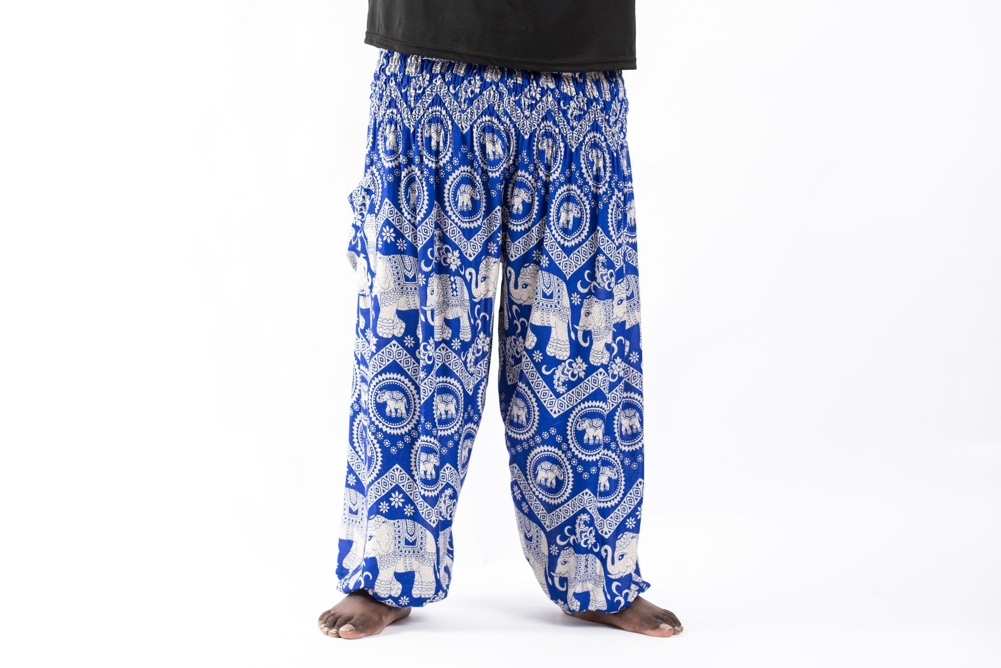 I currently own ten pairs of Thai Harem Pants, ranging from solid colors to collaborative colored and beautifully designed peacock feathers harem pants. And all I can say is wow, I made an awfully good decision when I bought these wonderful blue elephant pants! I was a little timid at first when I ordered my first pair, being a big guy, and boy was I wrong! These are my favorite go-to pants when I go to work! I work at a child's day care center and the young children that I watch over love the elephants :) They are so comfortable to work in and lounge about with. They also make a great fashion statement, it adds something bold and new in the USA that I've never seen on any guy before. I think my co-workers and parents like them too, all I have been getting is great comments about them <3 Do yourself a favor and get a pair or two for you today!