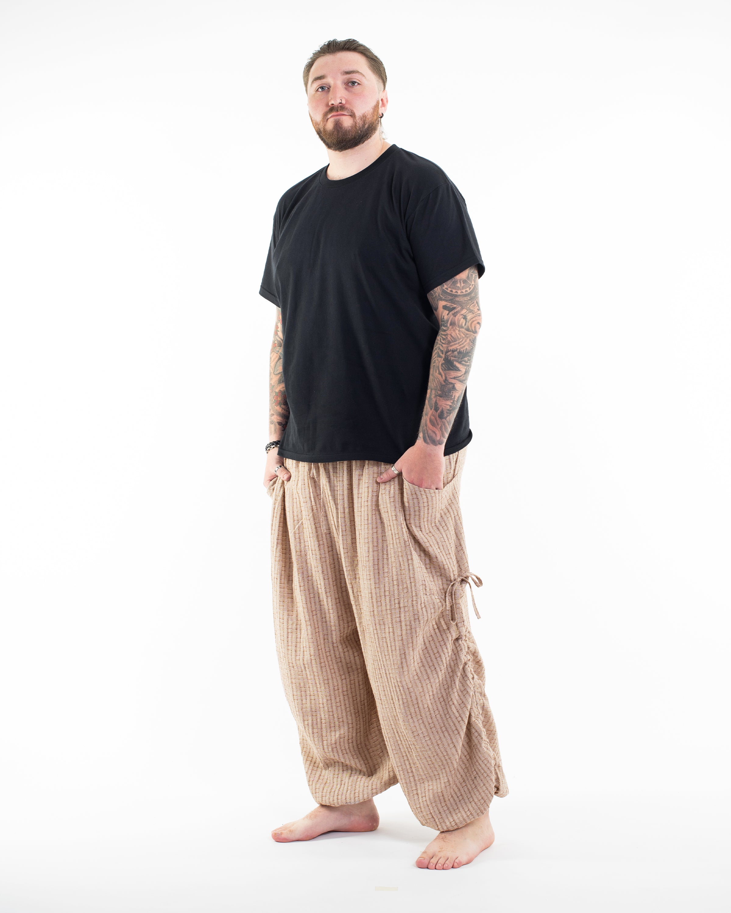 Plus Size Men's Ribbed Tencel Cotton Blend Pants in Beige