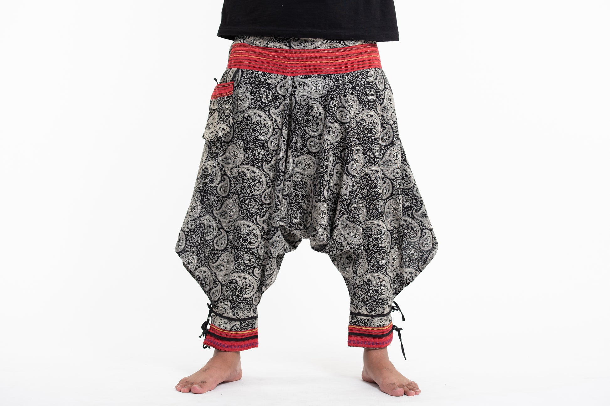Plus Size Paisley Thai Hill Tribe Fabric Men's Harem Pants with Ankle Straps