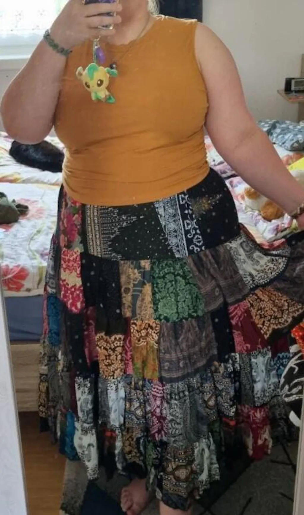 Plus Size Patchwork Long Skirt in Multi Prints