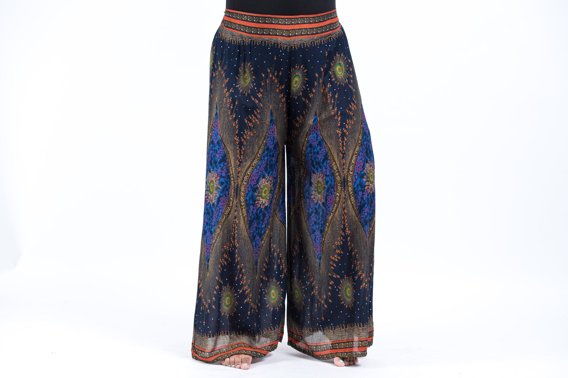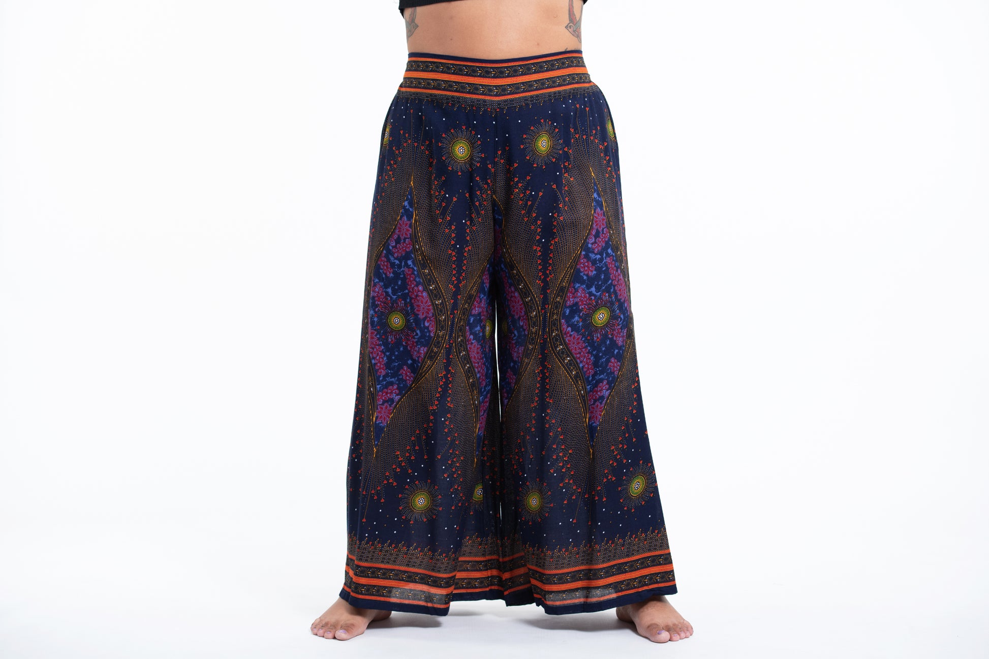 Plus Size Peacock Eyes Palazzo Style Harem Pants in Navy