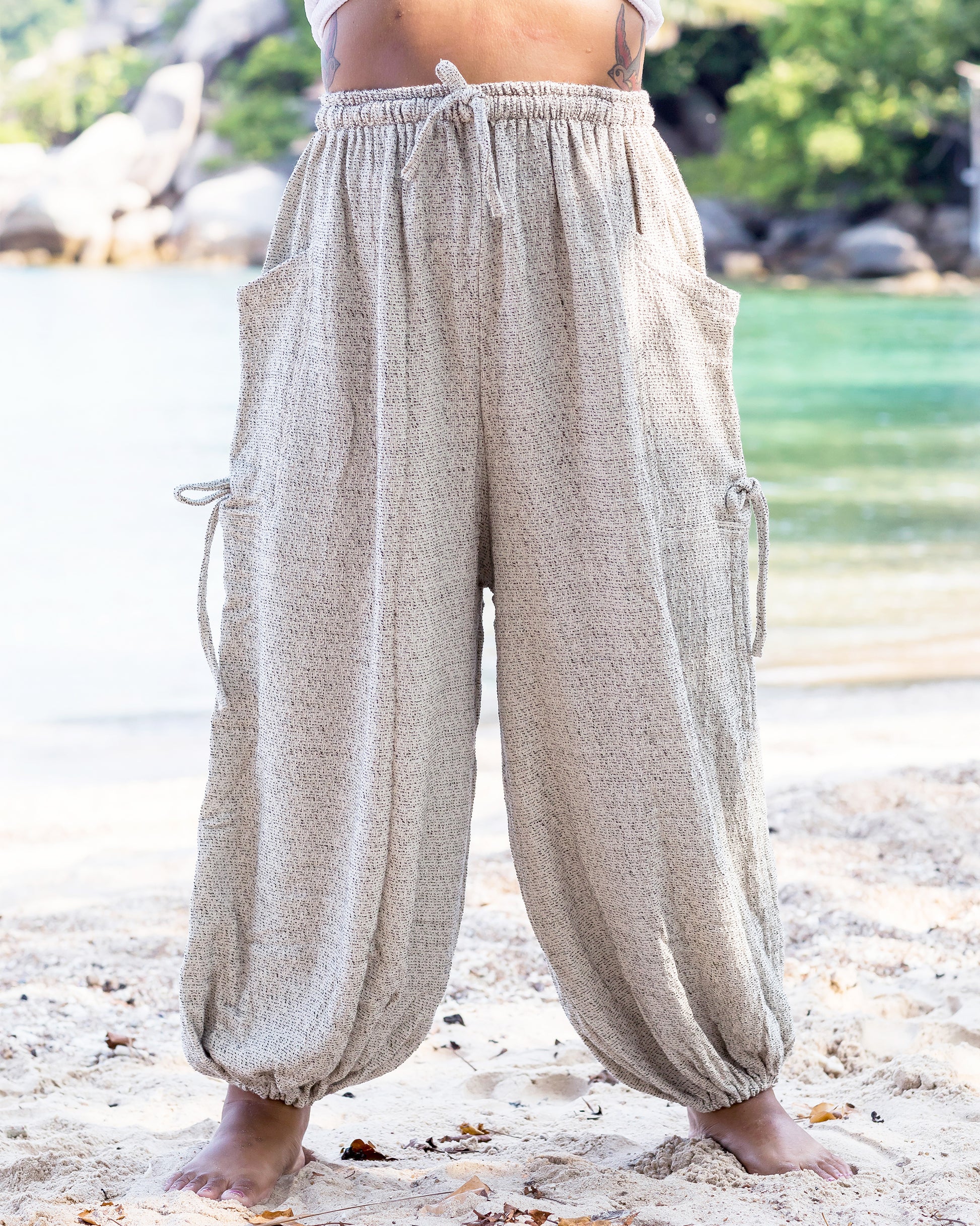 Plus Size Women's Ribbed Cotton Pants in Beige