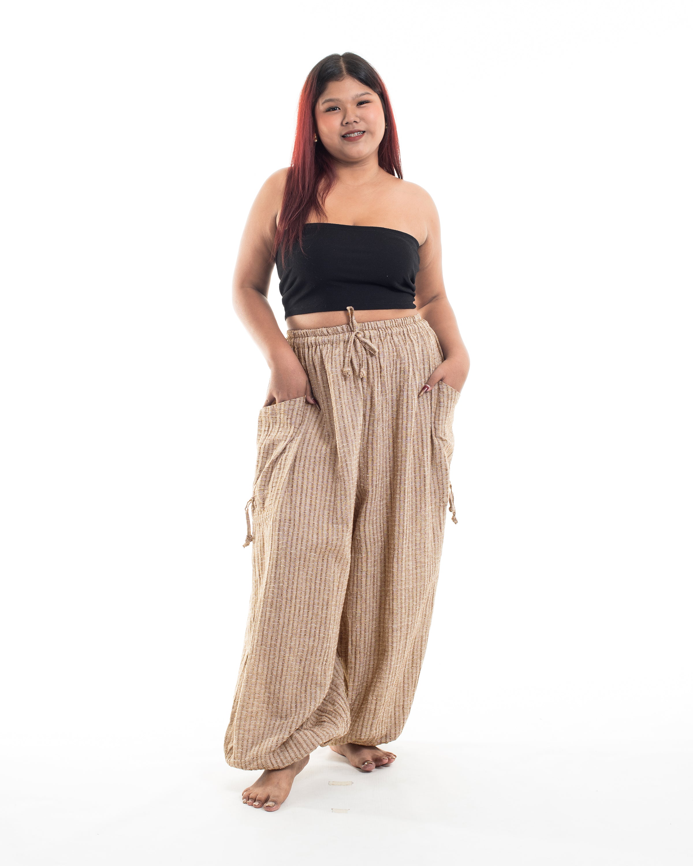 Perfectly handcrafted Tencel Cotton Blend pants made with a perfect fabric blend cotton fabric. The delicate ribbed woven pattern gives the pants a unique look and feel. Maximum comfort with elastic drawstring waist and 2 large side-pockets.