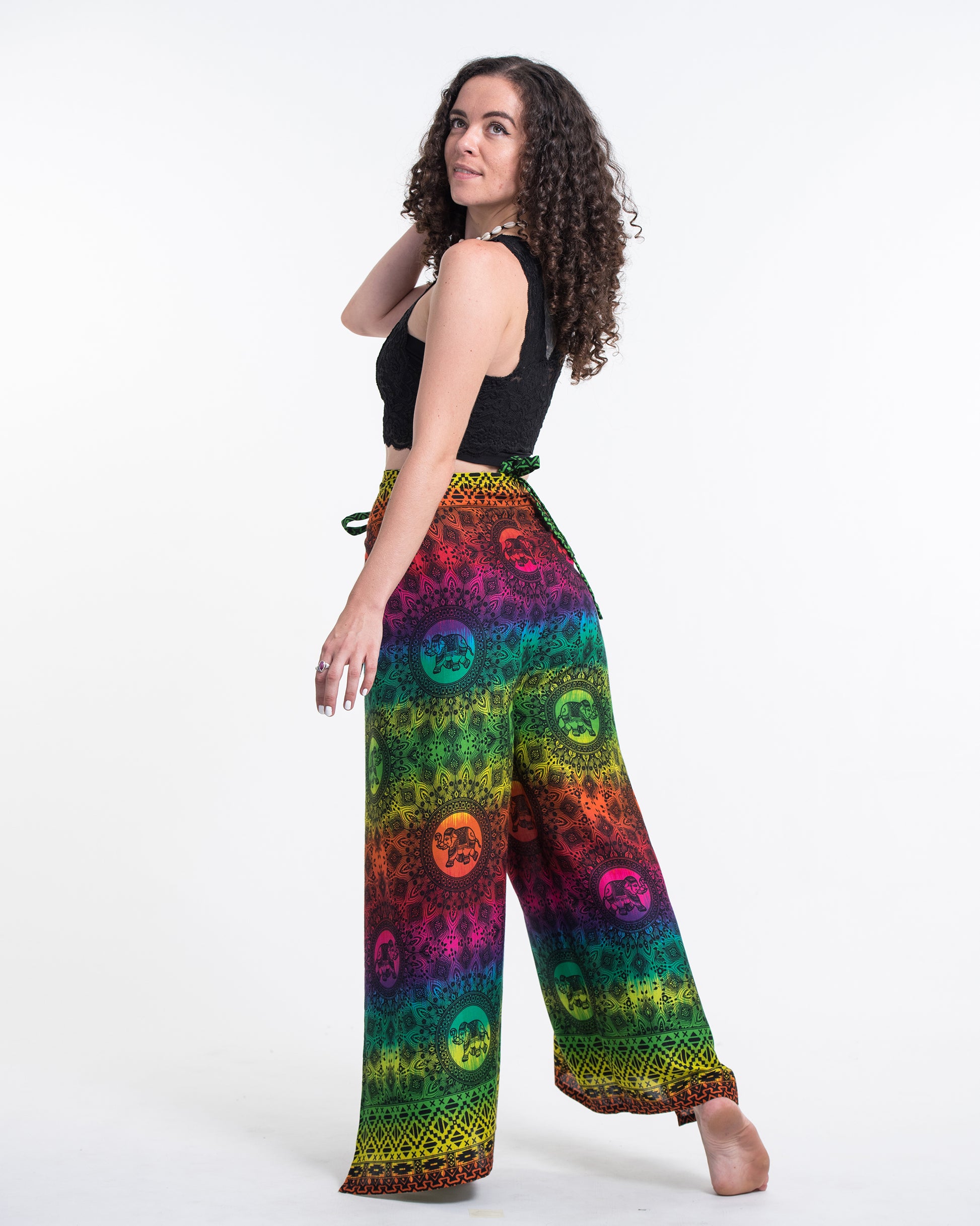 Rainbow Elephant Wrap Palazzo Style Elephant Pants in Green