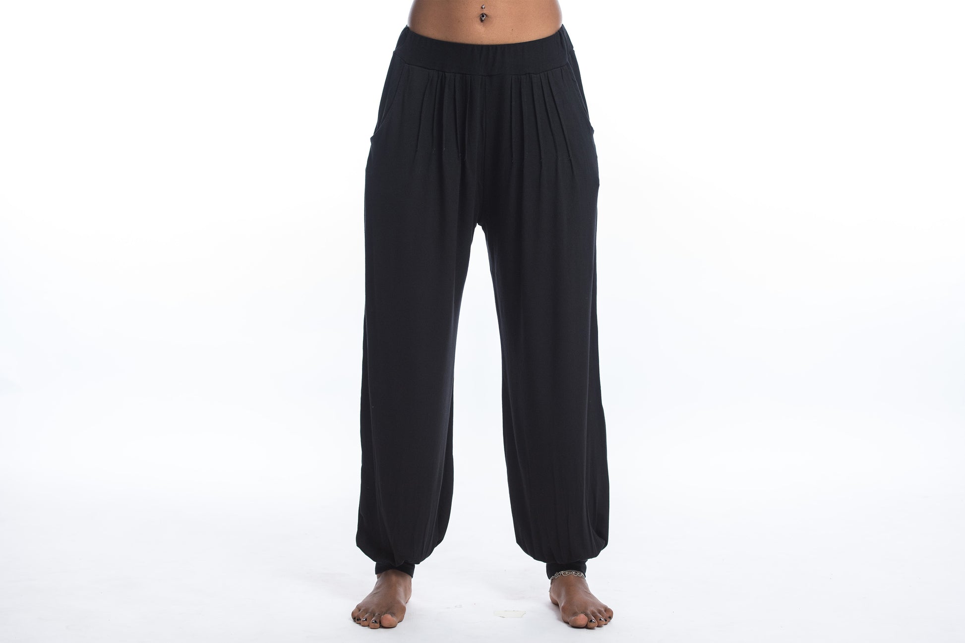 Our Super Super Soft high-cut harem pants are made from a smooth rayon-spandex blend that drapes beautifully and feels cool to the touch. The “Flex” comes from the gentle stretch in the fabric and the comfortable stretch waistband, so they move with you and stay easy all day.