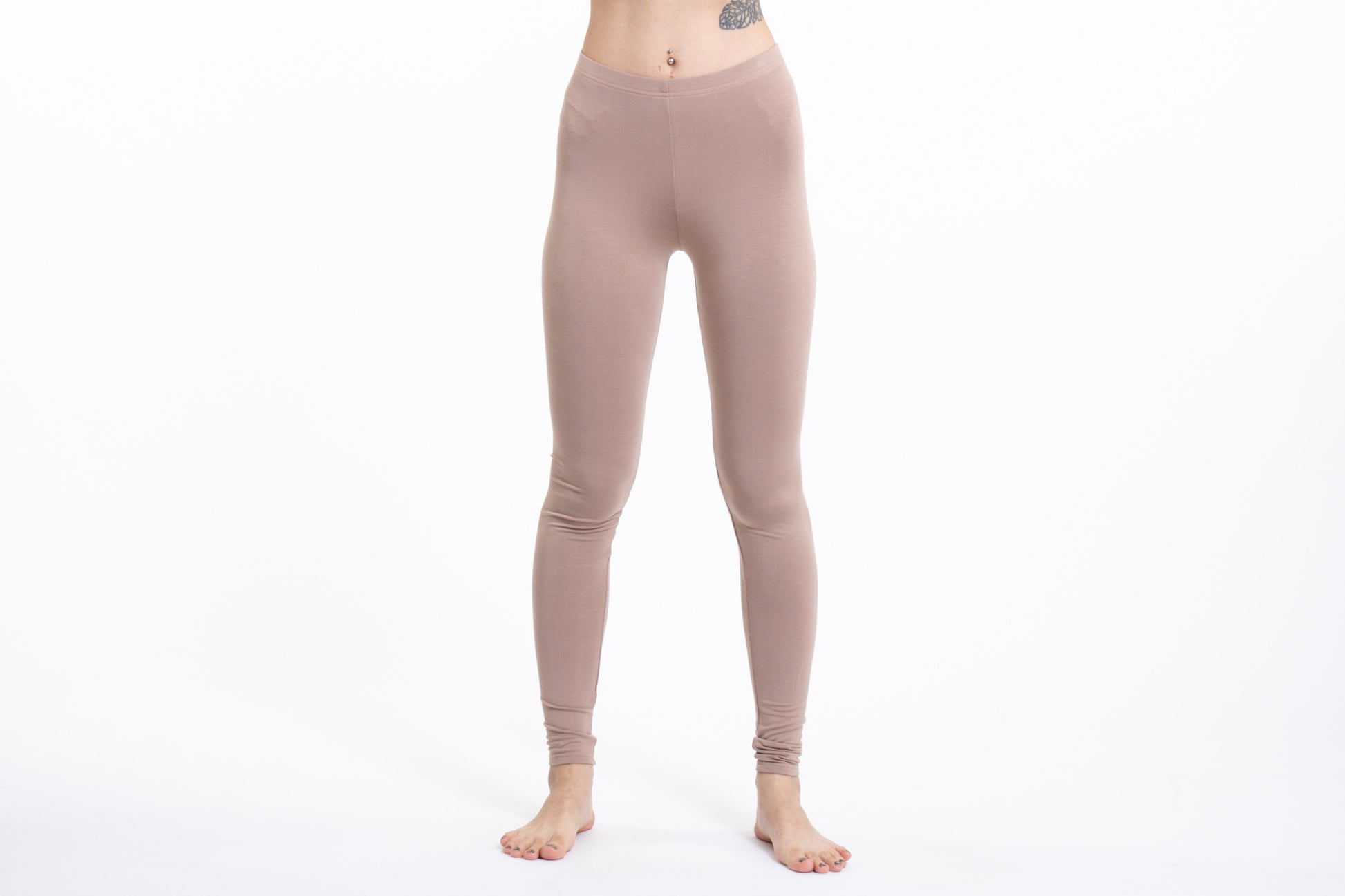Solid Color Cotton Leggings in Beige