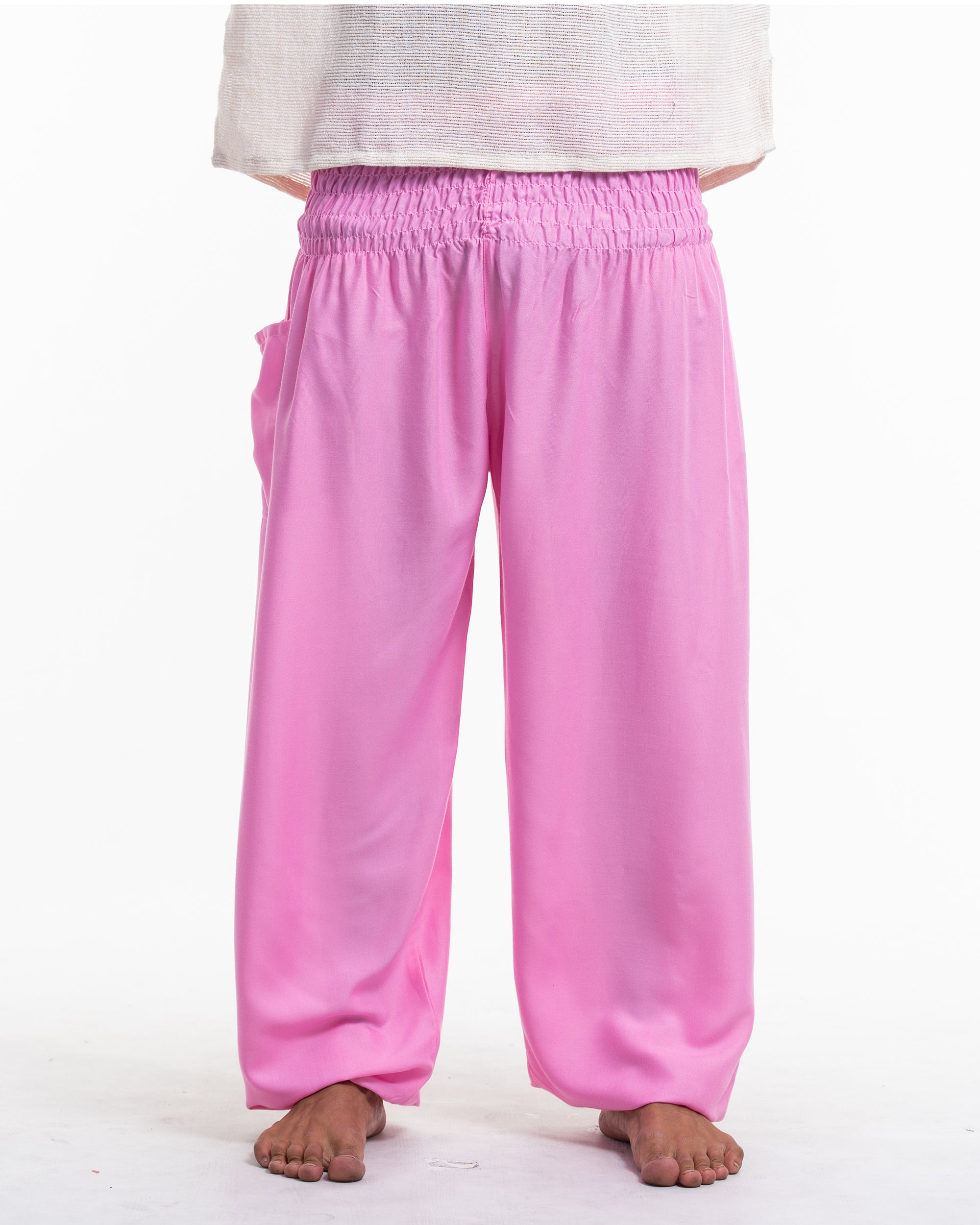 All these high cut gender neutral harem pants have comfy smocked waist and one side-pocket.