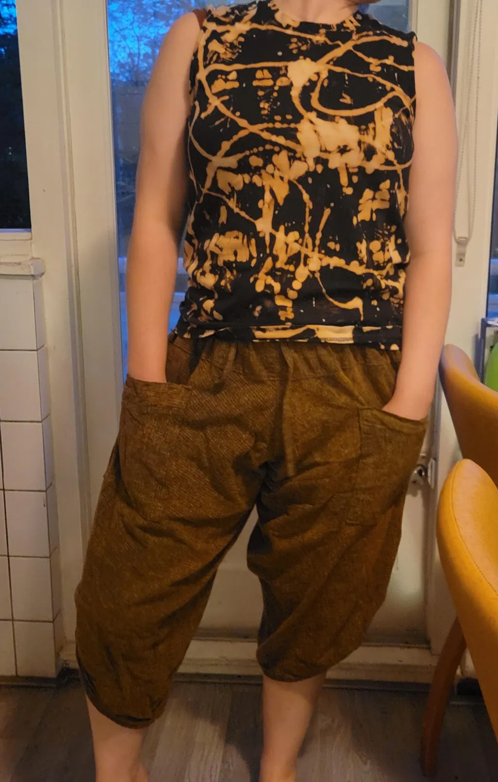 These pants are handcrafted from soft, stonewashed Thai cotton, providing vintage worn-in look and a cozy feel with unique muted color blends. They are designed with two large pockets and an adjustable elastic waistband featuring a drawstring for a perfect fit.