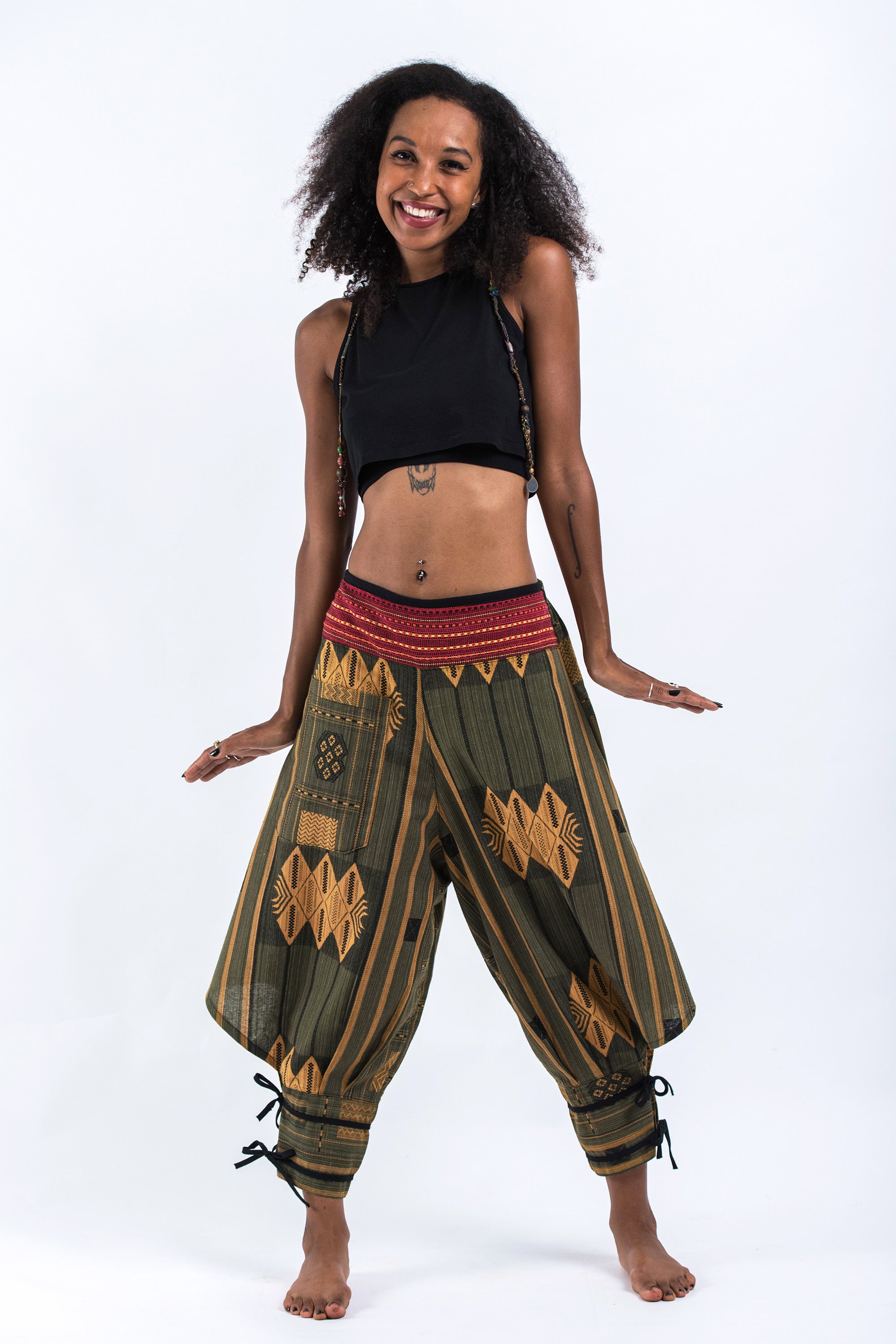Amazing Unique High Cut Harem Pants made from fairtrade beautiful traditional hill tribe fabric from the North of Thailand.