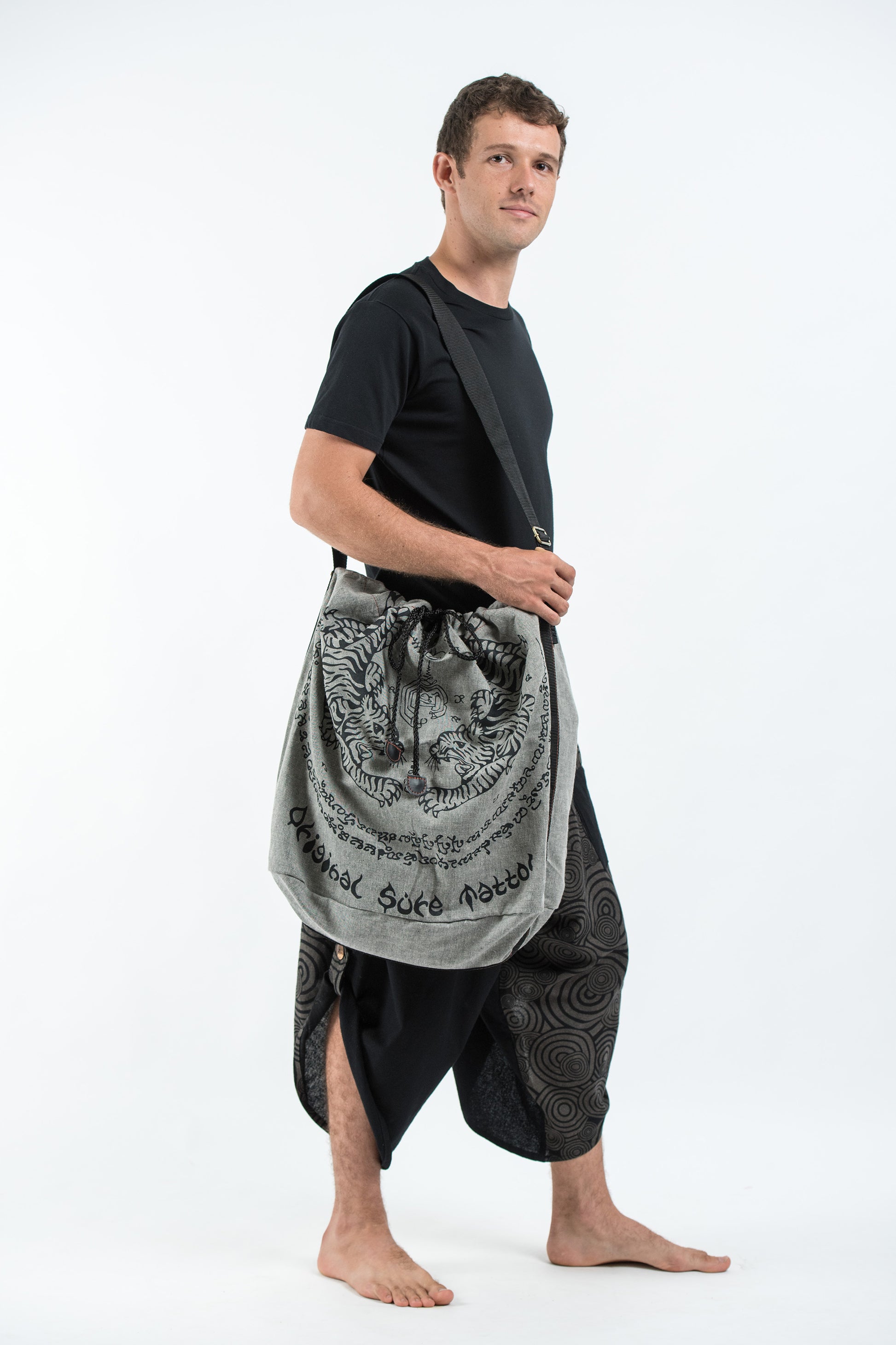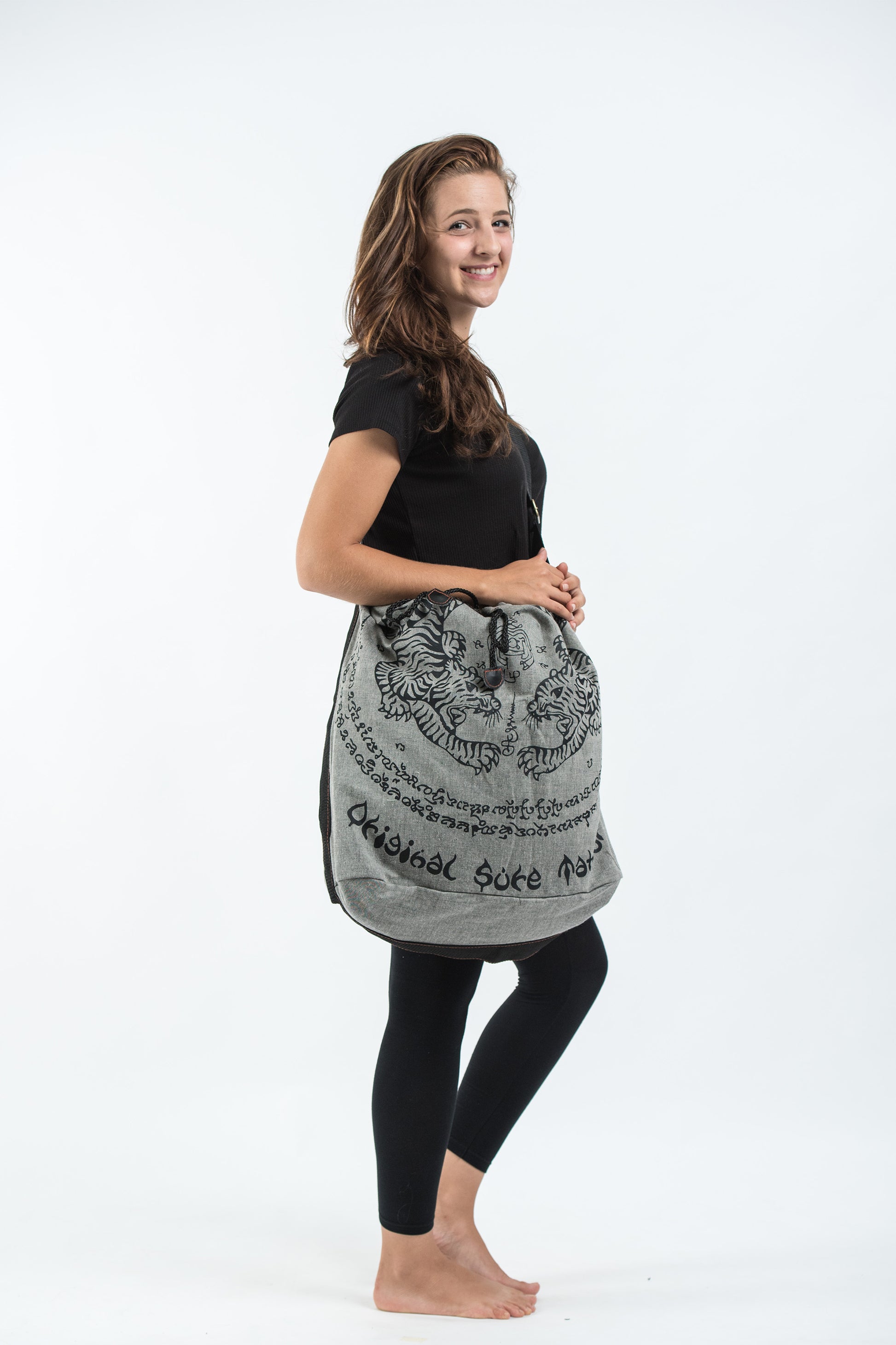 Thai Tattoo Denim Drawstring Tote Bag