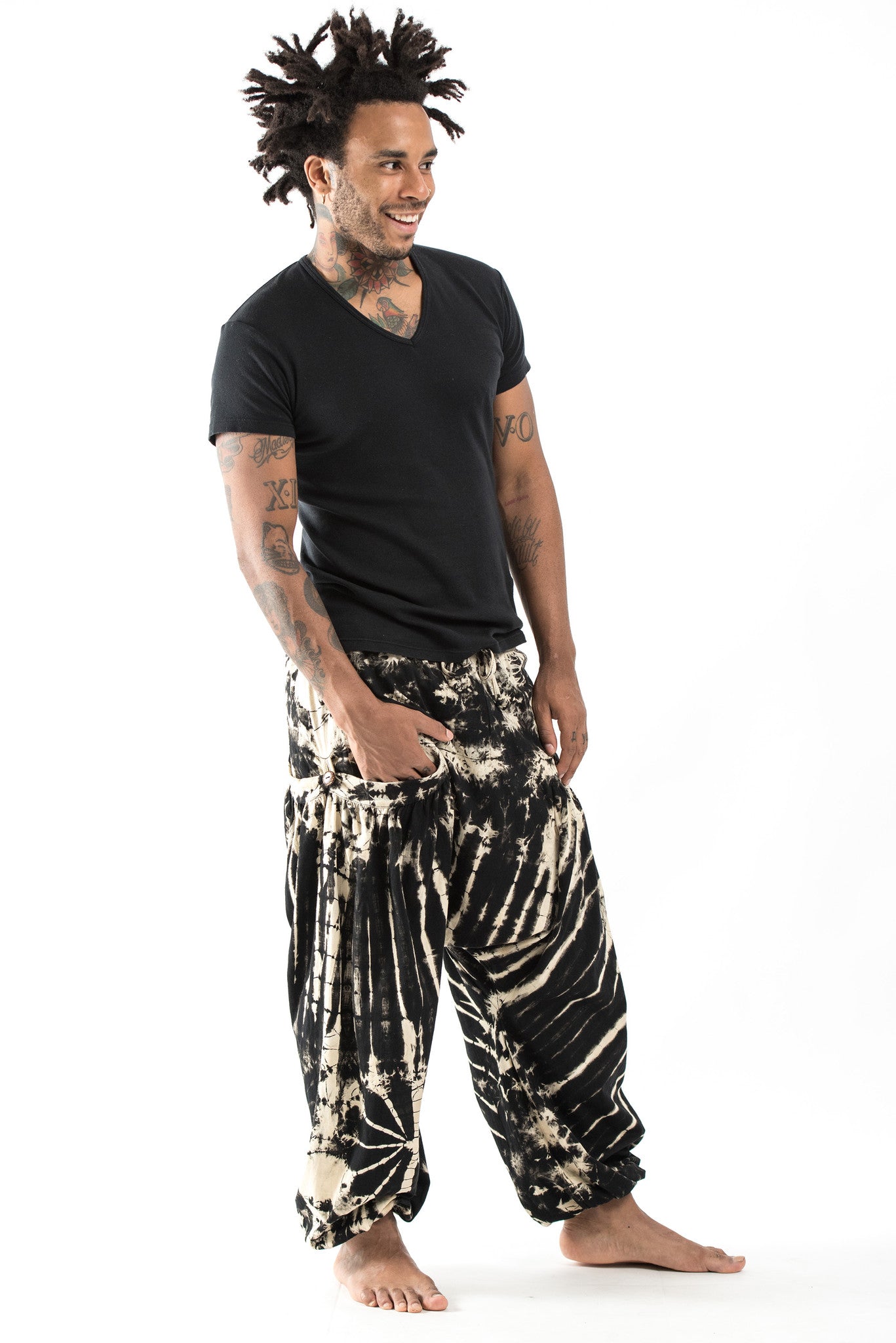 Tie Dye Cotton Men Harem Pants in Black White