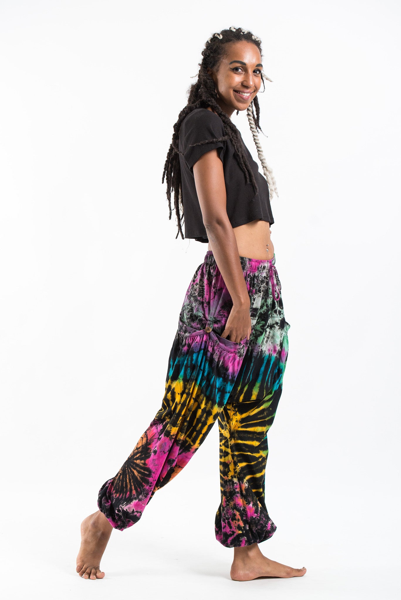 Tie Dye Cotton Women Harem Pants in Festival Black
