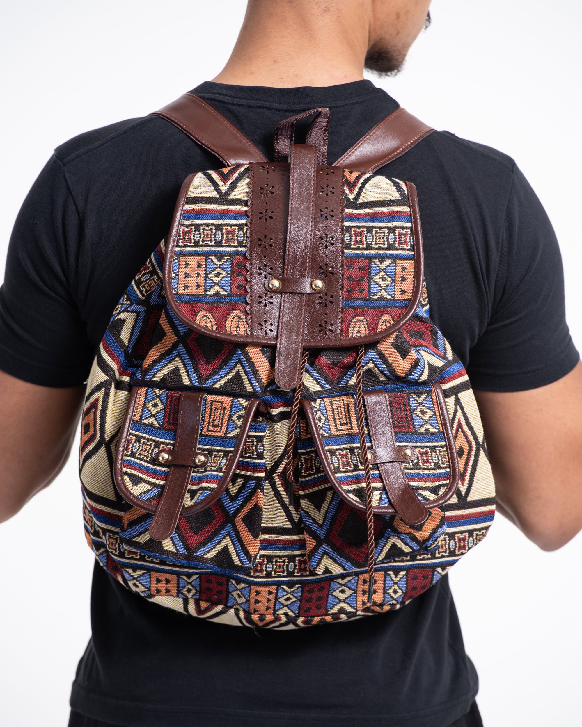 Tribal Woven Fabric with Faux Leather Backpack 04